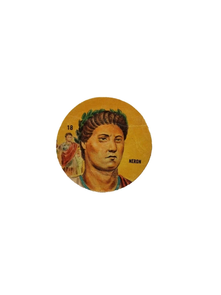Please note: In order to be competitive and keep low shipping costs all orders under $25 will be shipped as unregistered / untracked international letter- 1966 Figuritas Crack-Campeón Argentina Historical Series Card Disc Pog #18- Nero, Roman Emperor- Super Rare and hard to find vintage card. Size approx: 40 millimeters/diameter. Cardboard material. In EX-NM condition, unstuck from album with some light creases, details and signs of wear, as pictured. Thank you for looking! Please visit my store for similar items!! BUENOS AIRES VINTAGE Actual pictures. Nice condition All items are shipped within 24 hours of payment. Registered mail with tracking number included! SAVE MONEY! WE DO COMBINED SHIPPINGS, PLEASE ASK! Ship worldwide from Buenos Aires, Argentina Protected and safe bubble wrapped package / envelope Buy with confidence! You may find many other collectibles in my store. If you got any question about this or another item, please feel free to contact me! AIR MAIL REGISTERED INSURED to LatinAmerica /USA Europe/Asia/Oceania (Service provided by Correo Argentino. Delivery takes from 12-25 days ) International Buyers Please Note: Import duties, taxes and charges are not included in the item price or shipping charges. These charges are the buyer's responsibility. We can't guarantee the transit time; sometimes the package may be delayed due to countries customs, transit stations, holiday, weather, strikes or other objective reasons, particularly during shipping peak periods. Non-Payment bidder / buyer will be reported to Ebay. Any doubt / question please contact us. Thank you for visit! IF YOU HAVE ANY ISSUES REGARDING THIS TRANSACTION WE ARE WILLING TO SOLVE ANY PROBLEM WITH OUR CUSTOMERS. PLEASE CONTACT US BEFORE LEAVING NEGATIVE FEEDBACK.