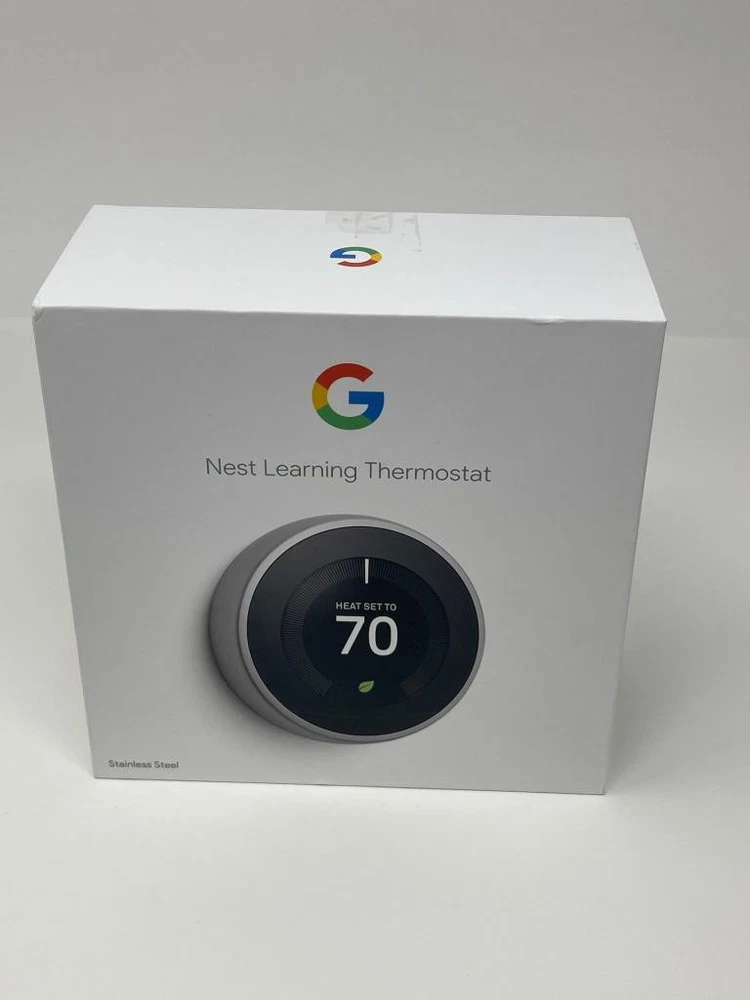 Thermostat Shape: Circular Number of Periods per Programmable Day: 1 Compatible Brand: Google Nest Features: Automatic Shut Off, Wi-Fi Wire Configuration: Wireless Smart Home Compatibility: Google Home/Assistant, Nest Power Source: Battery, Corded Electric Programmability: Programmable Thermostat Programmable Days: 7- Day Sensor Technology: Temperature Model: Nest Learning Thermostat (3rd Generation) gtin13: 0854448003877 MPN: T3007ES UPC: 0854448003877 Display Size: 1.57 in (4 cm) Material: Steel Voltage Type: Low Voltage Battery Size: AA System Switching: Heat-Cool-Off Brand: Google, Google Nest Heat Stages: 3 Year Manufactured: 2020