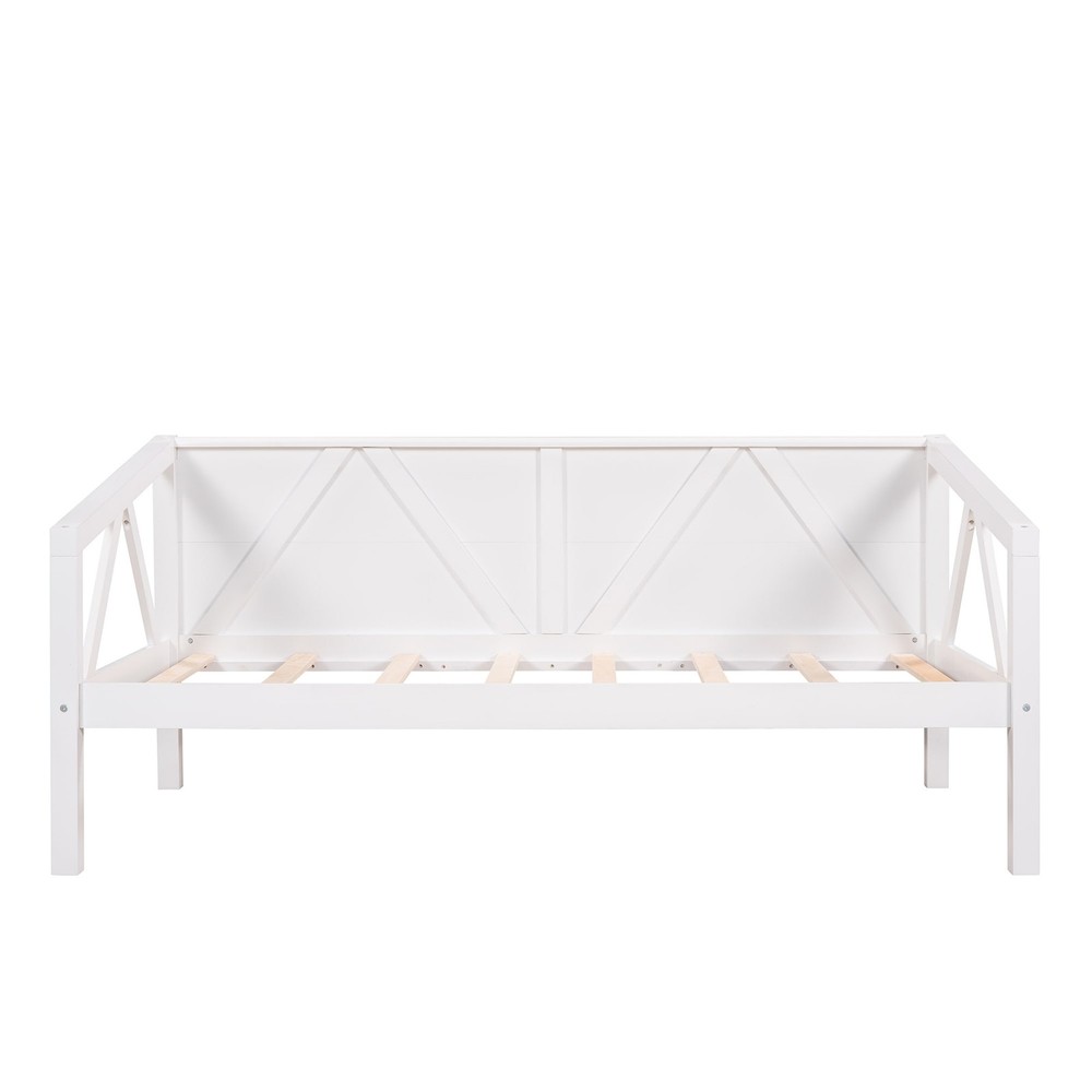 Are you finding a bed or sofa to sleep or have rest in leisure time? Our dual-use daybed frame can be used as sofa or bed. It is a good choice for you. High-quality, solid pine legs and a strong, durable frame ensures stability and durability for long-term use. Slat kit included so box springs are not required. This daybed is designed with a clean silhouette and a hue of elegance. It suits all styles of home decoration, and completes the look of any bedroom. Elegant design Multi-functional Design Sturdy Frame Additional Storage Space Overall Product Dimension:79 x 42.3 x 35(L x W x H). Weight Capacity: 275LBS Number of Slats:8 Recommended Mattress Thickness: 8" Mattress not included. Free Shipping Over $49.99* Details Nestfair Twin Size Daybed Product Description: Are you finding a bed or sofa to sleep or have rest in leisure time? Our dual-use daybed frame can be used as sofa or bed. It is a good choice for you. High-quality, solid pine legs and a strong, durable frame ensures stability and durability for long-term use. Slat kit included so box springs are not required. This daybed is designed with a clean silhouette and a hue of elegance. It suits all styles of home decoration, and completes the look of any bedroom. Elegant design Multi-functional Design Sturdy Frame Additional Storage Space Overall Product Dimension:79 x 42.3 x 35(L x W x H). Weight Capacity275LBS Number of Slats:8 Recommended Mattress Thickness8" Mattress not included.