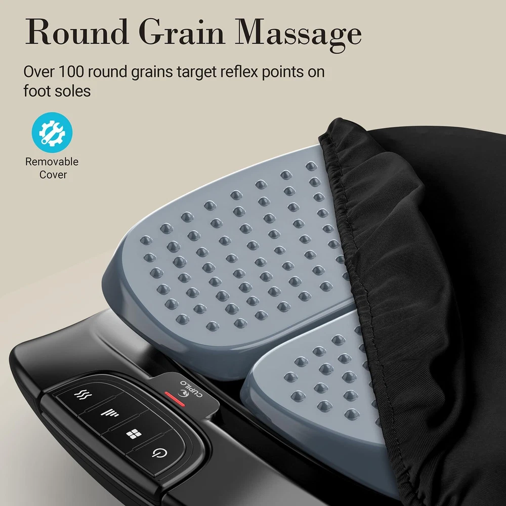 【Relieve Foot Discomfort】: foot massager for neuropathy provides high-frequency vibration to massage deep tissues and joints, combined with over 100 circular nodes to target foot acupoints. The foot and calf massager relieves pain from plantar fasciitis and neuropathy, and relieves foot and leg discomfort caused by prolonged standing, sitting, and cramping. 【Enhance Circulation】: The foot massager with heat provides the comfort of rapid heating, warming your cold, stiff feet and calves. Heated foot massager helps to relieve foot fatigue and pain, improve circulation, and enhance sleep quality. 【Remote Control Massage Modes】: The feet massager features 3 adjustable vibration intensities and 3 vibration massage modes. Equipped with a remote control, it allows for easy control without bending over. Default 15 minutes to complete a massage cycle. 【Multipurpose】: The vibration foot machine can massage your feet, calfs, legs, or back. It supports standing for individuals weighing up to 200 pounds. Easy to store, allowing you to use it in the office, at home, on the bed, or on the sofa. 【Fits All Foot Size】: The flat design fits any foot size. The foot machine is a thoughtful gift for dad on Father's Day and mom on Mother's Day, and it is an ideal present for men and women on birthdays, Valentine's Day, Thanksgiving, and Christmas.