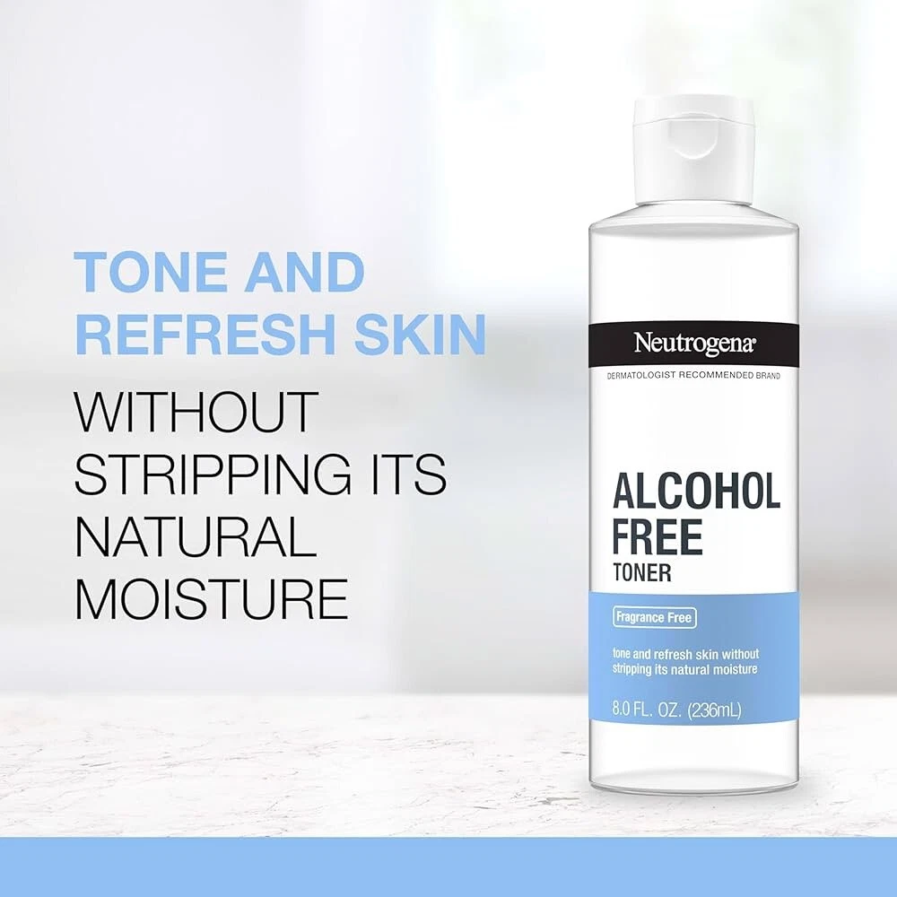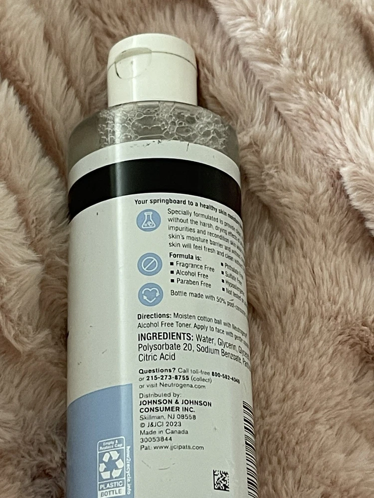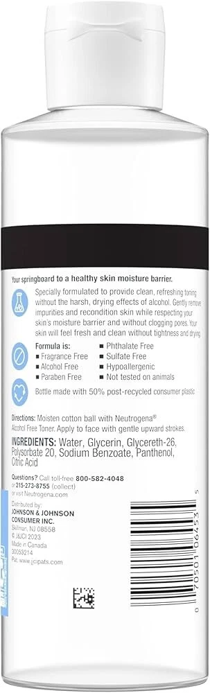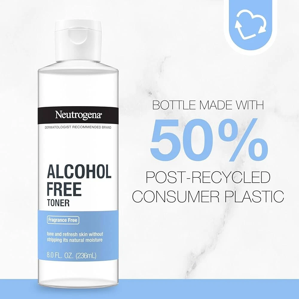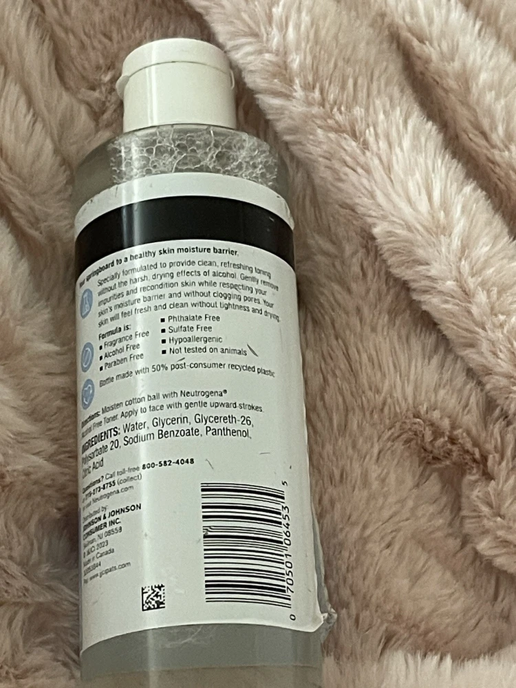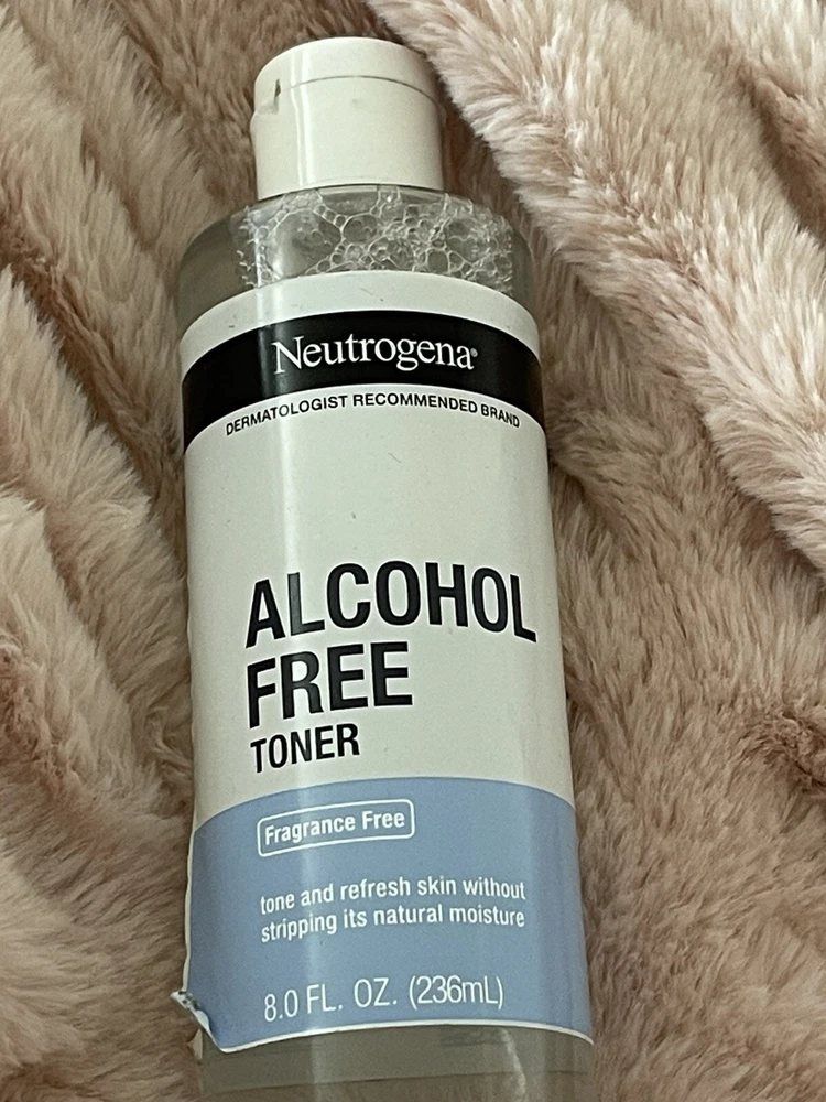 Neutrogena Alcohol Free Toner, Fragrance Free, 8 Oz (236mL). Not used but bottle side sticker is a little peeled .