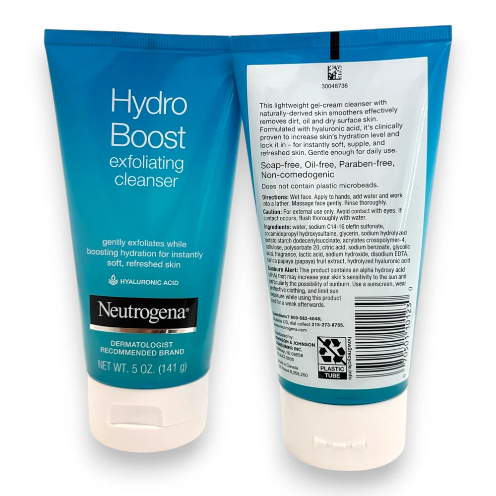 Neutrogena Hydro Boost Exfoliating Cleanser with Hyaluronic Acid 5.0fl.oz./147ML LOT OF 2