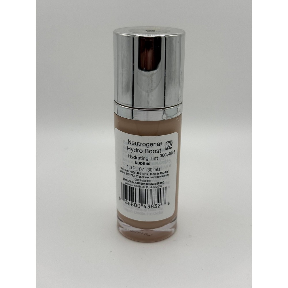 Neutrogena Hydro Boost Hydrating Tint 40 Nude 1.0 fl. oz Description: Plump your skin, boost hydration, and even the look of your complexion with Neutrogena Hydro Boost Hydrating Tint with hyaluronic acid. Better for your skin than wearing no foundation at all, this lightweight liquid face makeup quenches skin for 24 hours. The weightless formula plumps skin and is made with hyaluronic acid, an ingredient known for its skin-hydrating properties. The makeup tint is also oil-free and non-comedogenic,
