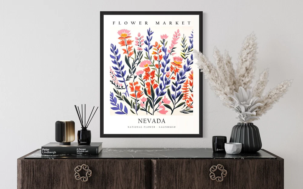 Nevada Flower Market Poster Art Print Botanical Collection For Bedroom Wall Art Material: Premium luster photo paper Print type: Inkjet printing One side printed + The finish provides the highest possible resolution and color saturation + Lasts up to 200 years in color and 400 years in black-and-white + Printed on high-quality resin-coated photo base paper medium + Posters can be hung with double-sided tape, tacks, or framed + Hand washing with a gentle cry cloth is recommended for extended durability I will hand select the best choice of paper for your chosen design to ensure top quality results for a beautiful, bright and luxurious print. All prints are sealed in cellophane slips for protection during transportation, and are shipped in a protective cardboard envelope.