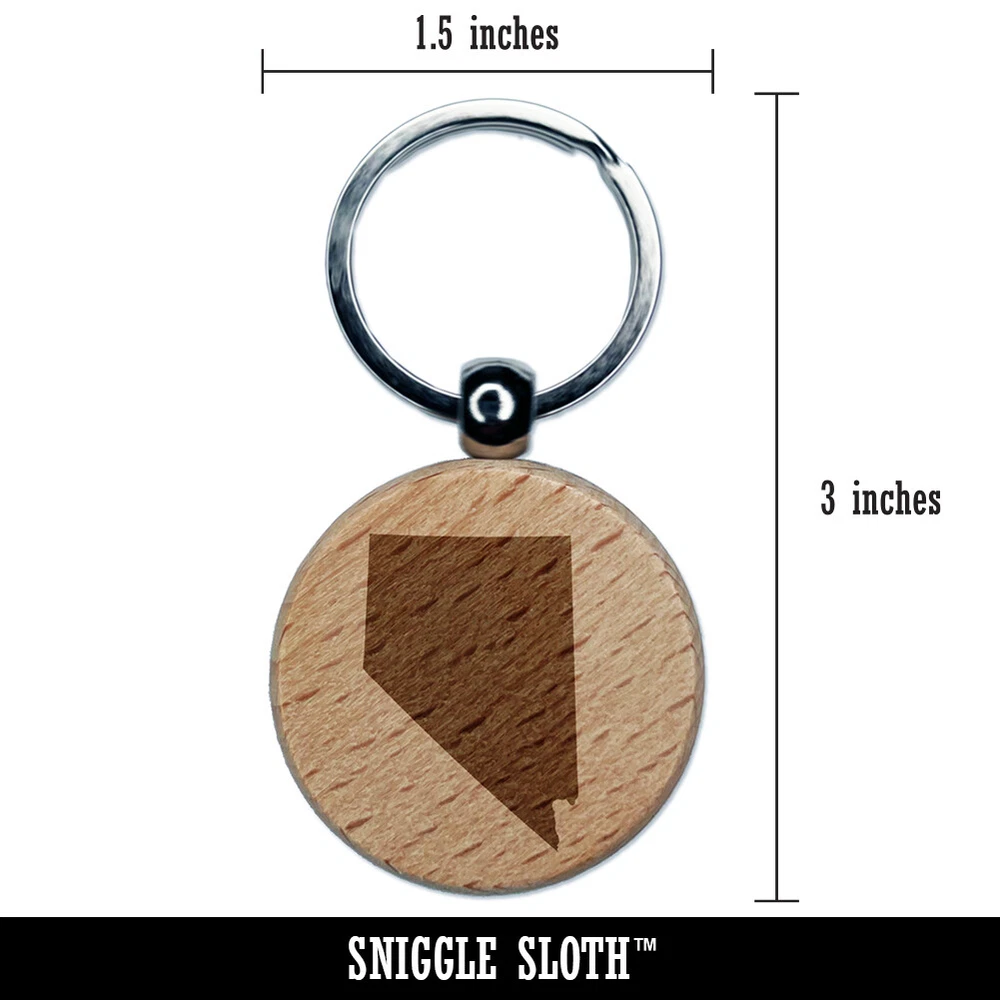 Nevada State Silhouette Engraved Wood Round Keychain Tag Charm