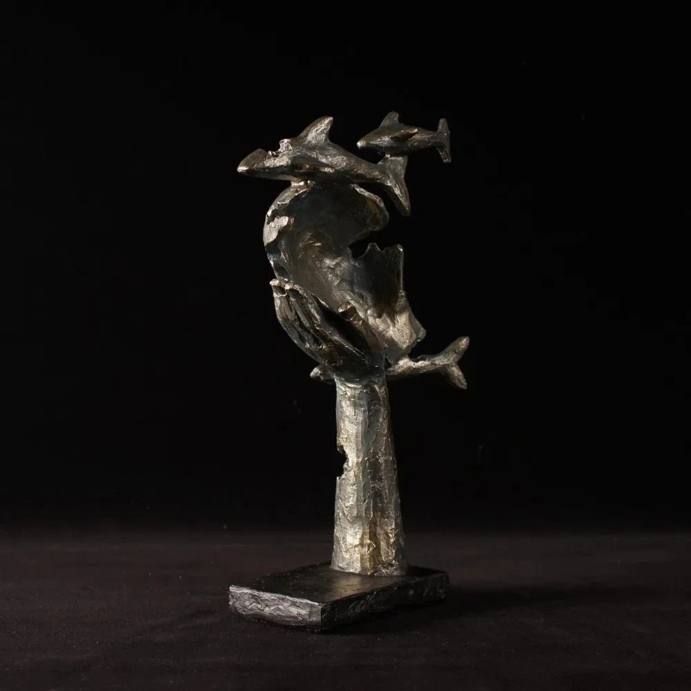 New 11” Female Face Sculpture with Fishes Resin Abstract Human Art Deco Statue