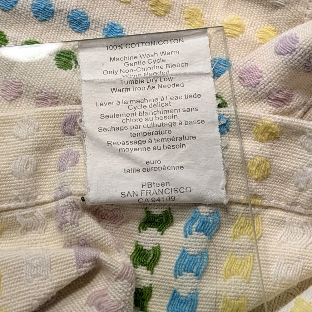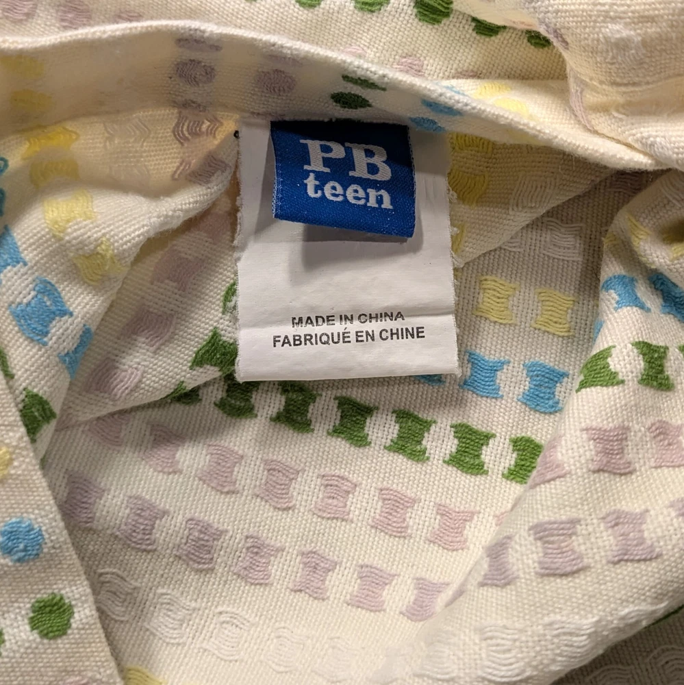 New 2 Pottery Barn PB Teen Euro Pillow Shams Excellent condition but please see pic of embroidery. There are pulls in some threads; it is how the pillows were manufactured. Cotton canvas, enbroidered stripes 28" by 29" (euro pillow size) classic, country, beachy theme. machine washable