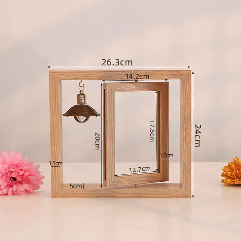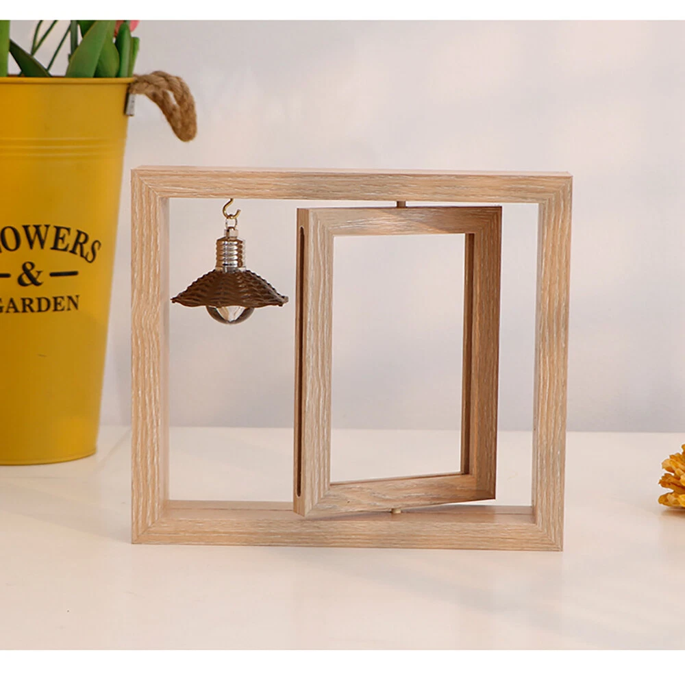 Product Description : Sturdy Wood Material: 360 degrees rotating floating picture frames are made of lightweight wood with a unique design vintage wood texture finish and real glass cover, makes a quality romantic anniversary gifts that enlightens & inspires life Inspirational Anniversary Gifts: Each anniversary gifts for her comes with a exquisite packaging, ready to gift without spending time on the package, surprise a loved one with rustic picture frames Product size: 26.3*24cm, inner frame: 7 inches Package lnclude : photo frame*1