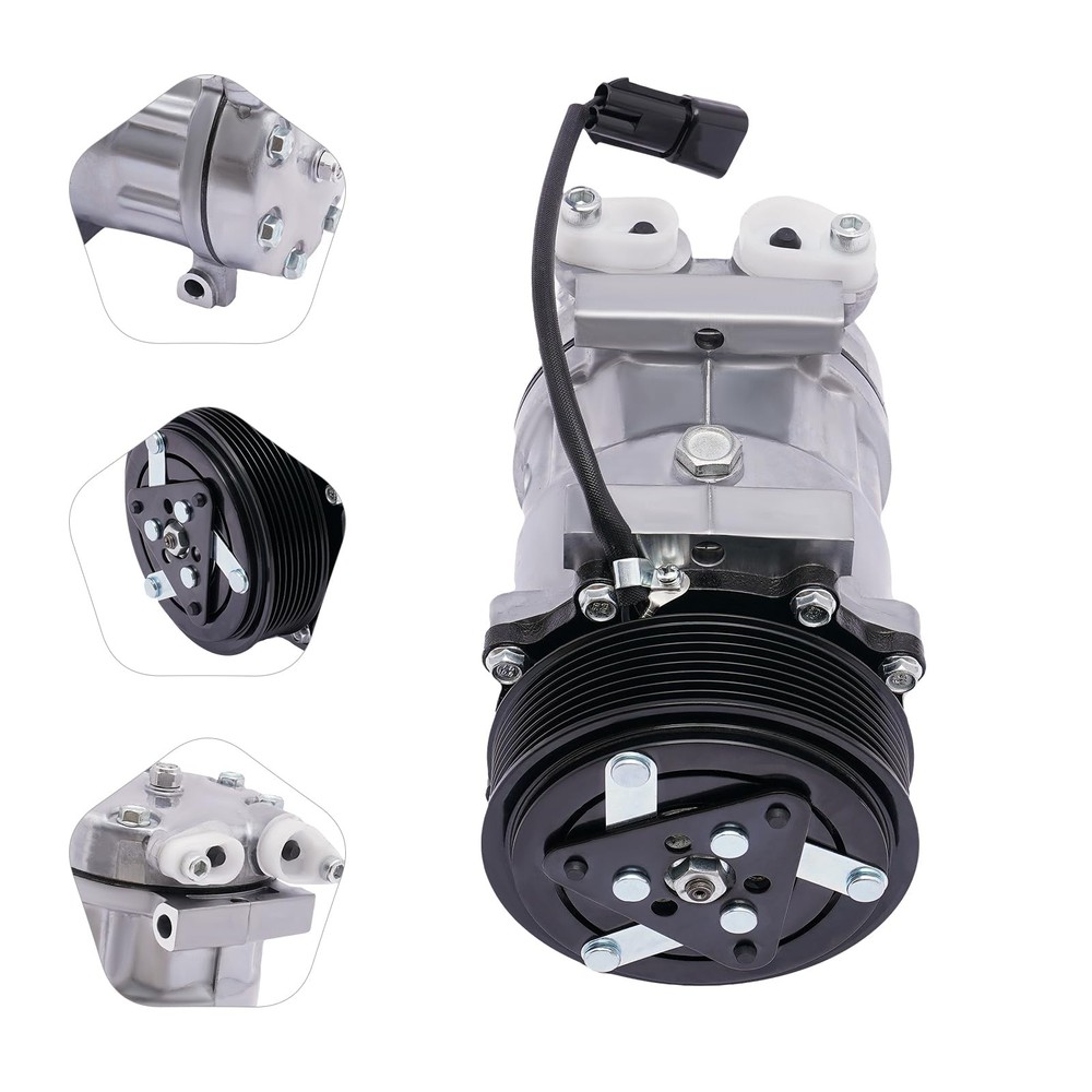 New A/C Compressor for International Navistar Trucks - Durable Aluminum Iron Copper Construction Reduces Fuel Consumption Solves Noise Ensures Better Cooling Effect for Comfortable Driving About this item 1、Built to Last Constructed from durable aluminum iron and copper materials this compressor is designed for longevity reducing the need for frequent replacements and maintaining its practical and aesthetic appeal over time 2、Powerful Function Effectively helps reduce fuel consumption by optimizing the air conditioning system leading to improved vehicle efficiency and lower operating costs during your drives 3、Noise Reduction Solves abnormal noise issues ensuring a quieter and more pleasant driving experience without the distractions of loud or unusual sounds from the AC unit 4、Enhanced Cooling Ensures a better cooling effect for consistent and reliable air conditioning performance keeping you comfortable in various weather conditions on the road 5、Ideal Fit Specifically designed for International and Navistar trucks providing a precise and reliable replacement that integrates seamlessly with your vehicle's existing systems Product Description 1*AC Compressor On Feb 4, 2026 at 19:00:37 PST, seller added the following information: