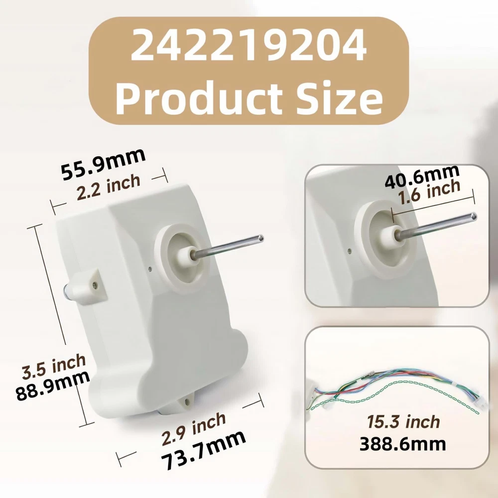 You may also like Silicone Resin Mold Desk Storage Organizer Making Epoxy Casting Mould Craft Tool 8.99 USD 20Pcs Headlamp Clips Attachment Head Light Clamps Hard hat Safety Cap Hook 9.59 USD Brand New Refrigerator Evaporator Fan Motor Assembly Part for LG for Kenmore 22.99 USD Laser Distance Sensor LDS Lidar Motor For Roborock S50 S51 S55 Vacuum Cleaner 14.99 USD FOR Stove Burner Power Fan Heater Replace Parts Wood Log Heated Fireplace Motor 17.99 USD Clip Latch Tab Button With Spring Kit For Dyson V7 V8 V10 V11 V15 Vacuum Cleaner 11.99 USD Product Description Features: Wide compatibility: The refrigerator evaporator fan motor has been designed for a variety of major refrigerator brands, demonstrating excellent cross-brand compatibility. This means that no matter what brand of refrigerator you have in your home, this fan motor may be an ideal replacement without having to worry about fitting. High energy efficiency and low noise: The AC115V, 60Hz power supply specifications and optimized 3.3-watt power design ensure that the motor operates efficiently while maintaining low energy consumption. In addition, its carefully designed low noise features allow the refrigerator to operate more quietly, creating a peaceful and comfortable atmosphere for your home or work environment. High quality materials and durability: The motor body is made of strong and durable metal materials, which not only ensures the long-term stability and reliability of the product, but also extends the service life. This means you don't have to replace parts as frequently, reducing maintenance costs and time investment. Quick installation and easy maintenance: The refrigerator evaporator fan motor is designed to be easy to install, so that even non-professionals can easily replace it. At the same time, its wide compatibility also simplifies the spare parts selection process, making maintenance more convenient and efficient. Comprehensive solution to common problems: This fan motor provides an effective solution to many common refrigerator problems, including excessive noise, failure to start, insufficient cooling, and motors that stop working due to aging or damage. By replacing this motor, you can quickly restore the normal function of your refrigerator, ensuring that food and beverages are always stored in optimal condition. Specifications: OEM Part Number: 242219204 Voltage: AC115V Frequency: 60Hz Watt: 3.3W RPM: 2600 Size: As picture show Replacement Part Numbers: PS11775575, AP6041603, 4546153, EAP11775575 Compatible Brands: For Kenmore, for Frigidaire, for Electrolux, for Crosley, etc. Compatible Models: 25360022611, 25360302611, 25360303611, 25360303612, CRT151RW2, CRT182HQB4, CRT182HQW4, CRT182QB7B, CGTR1825SF3A, CGTR1825SF4A, CGTR1825SP3A, CGTR1825SP4A, etc. Package Included: 1 x Fan Motor About Us Payment Shipping Returns Contact Us Welcome to our store! Our aim is to offer our clients items with high quality and fast delivery, also our price will be reasonable. We supply many products including video game, health & beauty, phone accessories, computers accessories, camera & camcorder,car accessories, games, toys & hobbies, jewelry, antique & craftwork. Excellent customer service and a reliable credit standing is our tenet. We accept all verified payments from ebay. Orders will be shipped after receiving cleared payment. We ship most of our orders within 24 hours, and may up to 48 hours. If you want faster shipping way. Please contact us before making payment. Sometimes due to problems with our transportation company system, your shipping information may be delayed to update. We recommend that you try again after 3-4 days. If you still haven't checked the shipping information, you can contact us by ebay message. Always believe we can figure things out with communication, if it comes to return, the pacakge must be intact and the same as you receive. If you have any questions, please feel free to email our service specialists 24 Hours a Day, 7 Days a Week. We will reply you ASAP. Return/refund is accepted within 30 days after the buyer receives the item. NO exchange will be accepted after 30 days from the date when the item is received. Please contact us first before returning your product!!! If you have any questions, our Customer Service staffs welcome you to email us. We strive to answer all questions and resolve any problems as quickly as possible. We care about our valued customers, and will always try to help you. So if you have any problems, You can contact us 7*24, we will reply at the first time. About Us Welcome to our store! Our aim is to offer our clients items with high quality and fast delivery, also our price will be reasonable. We supply many products including video game, health & beauty, phone accessories, computers accessories, camera & camcorder,car accessories, games, toys & hobbies, jewelry, antique & craftwork. Excellent customer service and a reliable credit standing is our tenet. Payment We accept all verified payments from ebay. Orders will be shipped after receiving cleared payment. Shipping We ship most of our orders within 24 hours, and may up to 48 hours. If you want faster shipping way. Please contact us before making payment. Sometimes due to problems with our transportation company system, your shipping information may be delayed to update. We recommend that you try again after 3-4 days. If you still haven't checked the shipping information, you can contact us by ebay message. Returns Always believe we can figure things out with communication, if it comes to return, the pacakge must be intact and the same as you receive. If you have any questions, please feel free to email our service specialists 24 Hours a Day, 7 Days a Week. We will reply you ASAP. Return/refund is accepted within 30 days after the buyer receives the item. NO exchange will be accepted after 30 days from the date when the item is received. Please contact us first before returning your product!!! Contact Us If y