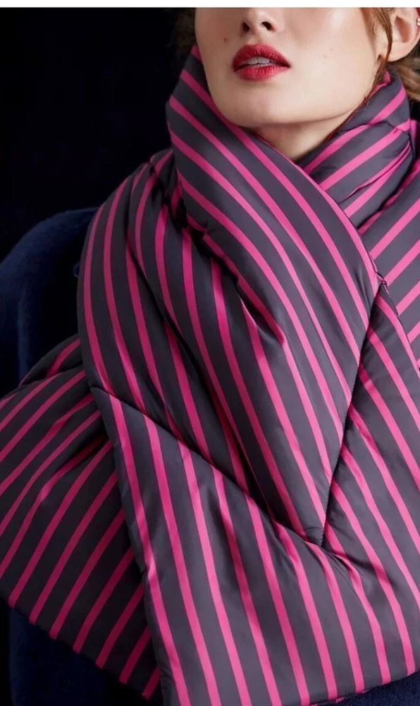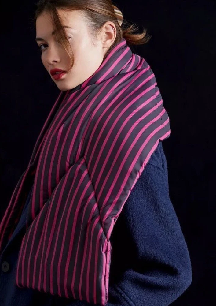 HomeNew ANTHROPOLOGIE Striped Puffer Scarf Navy Blue Purple New