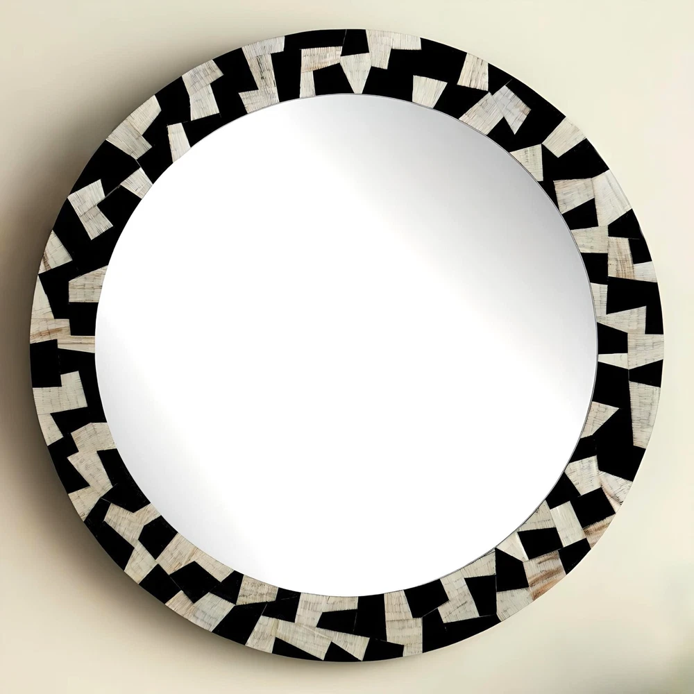 A contemporary wall mirror in the manner of Karl Springer, handcrafted from solid wood and tessellated with etched buffalo horn and black resin tiles. Coordinating furniture, lighting, and decorative objects are available in our eBay store. Dimensions 36" L x 1" W x 36" H Item Condition New - This is a handcrafted item, and slight variations in finish or material may occur. Each piece is unique, yet maintains a consistent standard of quality and design. Contact Us For inquiries or assistance with your order, feel free to reach out to us through eBay messages. Our team is available Monday through Saturday, from 10:00 a.m. to 6:00 p.m. CST. Shipping & Delivery We offer complimentary ground shipping on all orders, excluding oversized items. Expedited shipping and processing are unavailable. Orders are typically dispatched within 7-10 business days. While delivery timelines are estimated and not guaranteed, we will notify you of any delays beyond this timeframe. Product Availability Additional stock may be available beyond the listed quantity. While we strive to ensure all products are in stock at the time of listing, availability may vary. Should an item become unavailable, we will promptly notify you. © Imperial Objects Inc. All rights reserved.