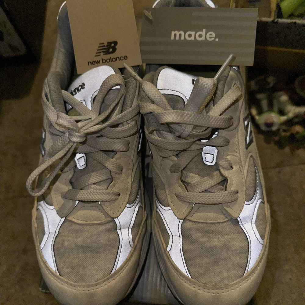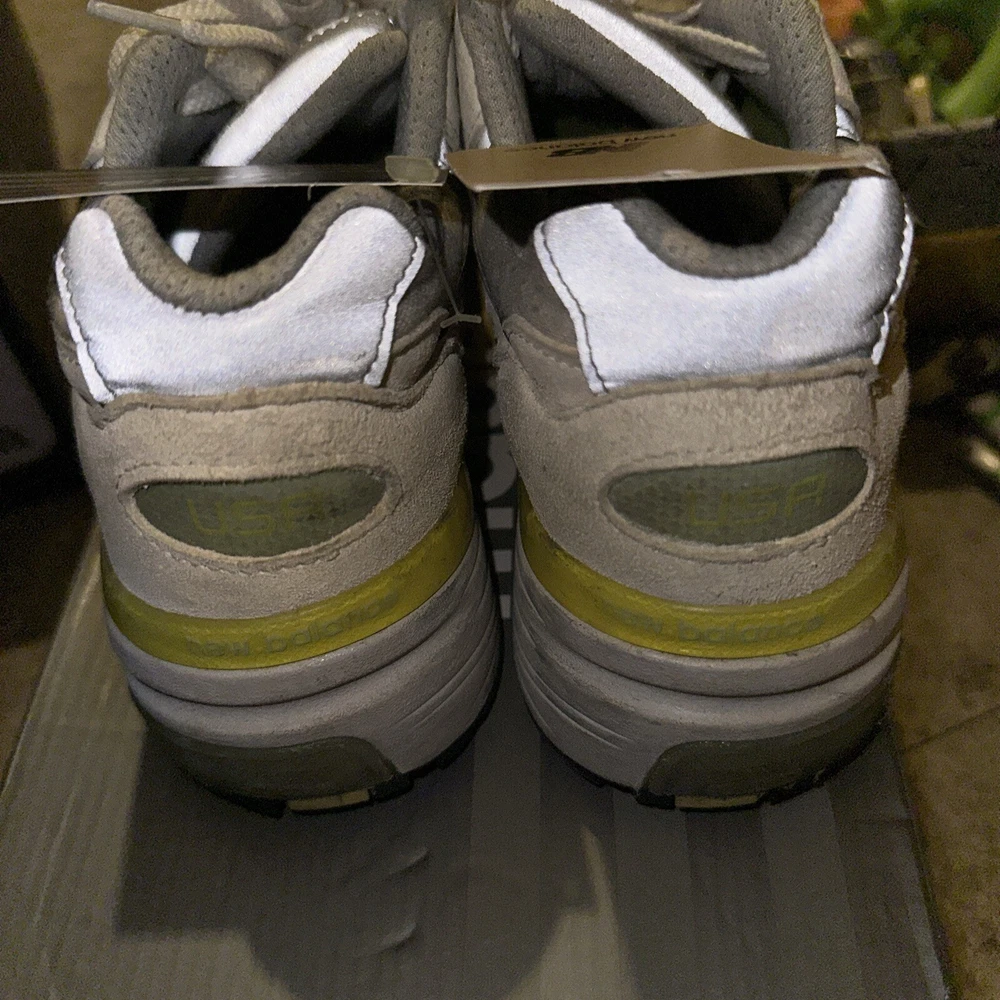Elevate your active and casual wear with these stylish New Balance 992 sneakers. Made in the USA with a gray suede upper and white cyclone design, these limited edition shoes are both comfortable and lightweight. The lace-up closure ensures a secure fit while the rubber outsole provides traction for walking, running, and jogging. These women's sneakers feature a cushioned insole, no pronation, and a low-top shoe shaft style. The synthetic lining material and foam insole material further add to the comfort. With a solid pattern and New Balance logo accents, these shoes are the perfect addition to any sneaker collection.