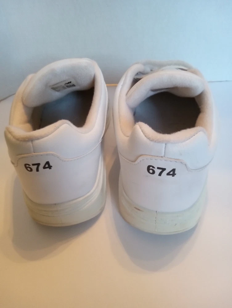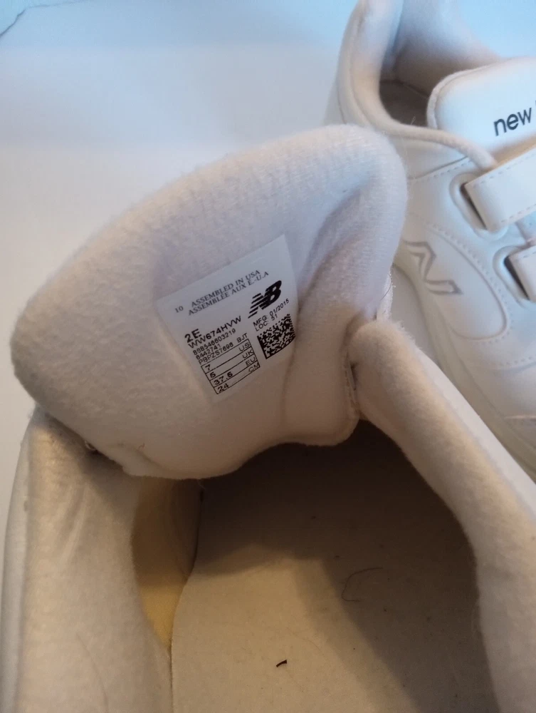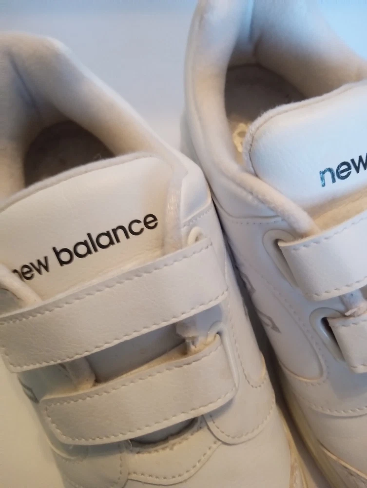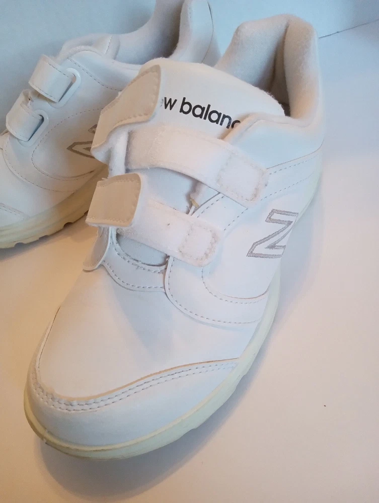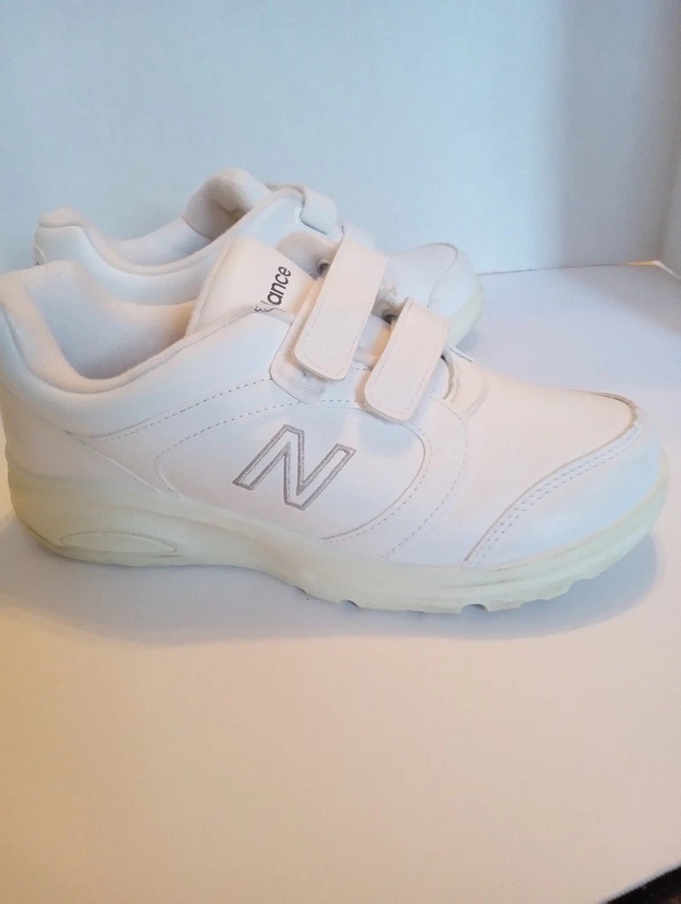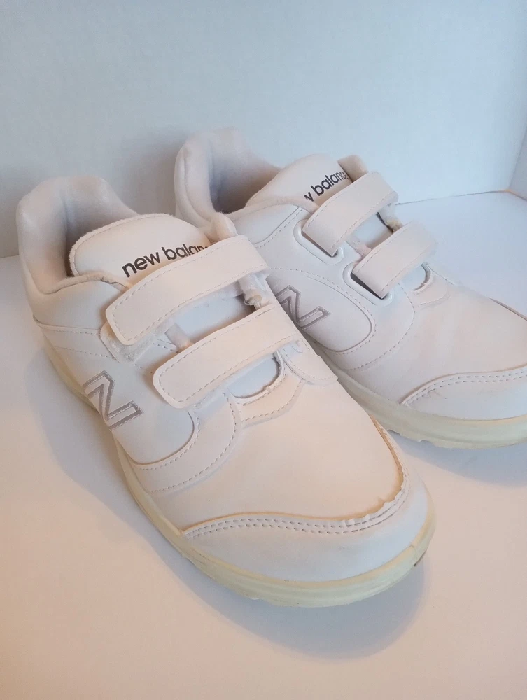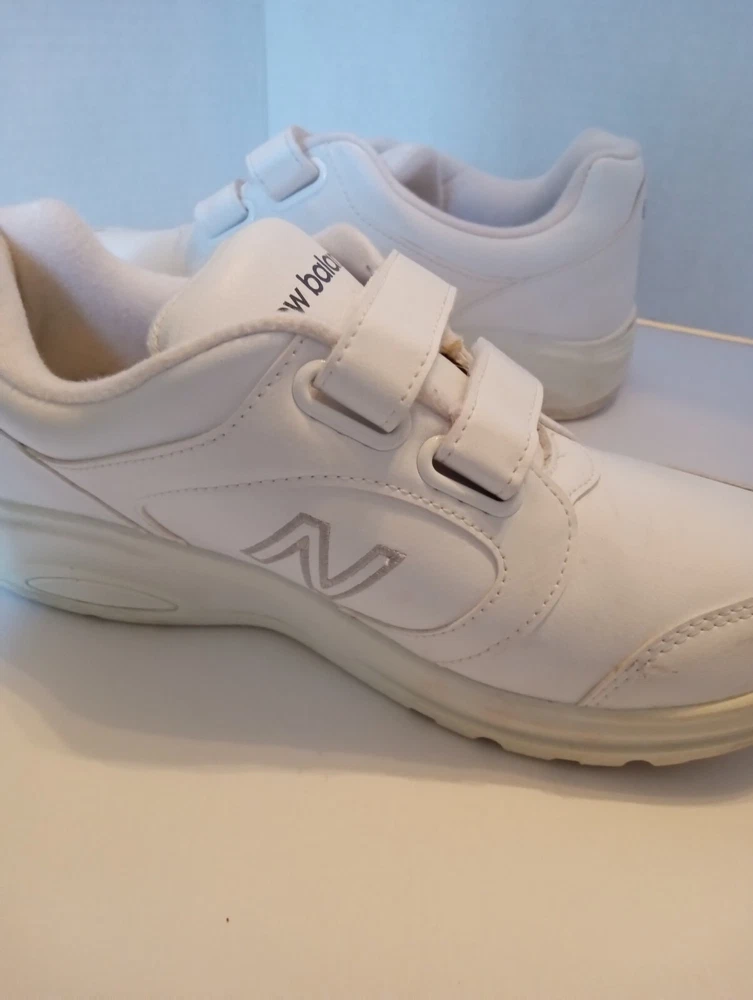 These New Balance Women's Sneakers are crafted in white leather with a round toe shape and a hook and loop closure for easy wearing. Designed in size 7 2E, they feature a flat heel under 1 inch, making them ideal for casual and travel occasions. The sneakers offer comfort with cushioning, slip resistance, and breathability, making them suitable for walking and hiking activities in various seasons. Made with a rubber outsole and leather lining, these sneakers also include adjustable straps for a customized fit.