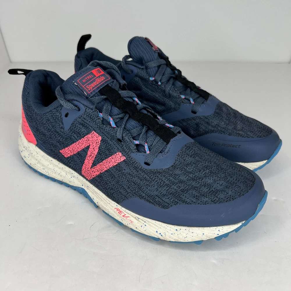 Elevate your athletic performance with the New Balance Women's WTNTRCC3 Blue Nitrel V3 All Terrain Trail Running Shoe. This sneaker boasts a low top shoe shaft style and lace-up closure for a secure fit during any activity. The shoe features a solid pattern and is made with a blended fabric upper material and mesh lining material, allowing for breathability during summer, fall, and spring seasons. The shoe's outsole is made of rubber, providing traction and durability for walking and trail running. The insole is made of foam, adding to the comfort and support of the shoe. This New Balance Nitrel model is available in UK Shoe Size 6, US Shoe Size 8, and EU Shoe Size 39. Perfect for any woman looking for a stylish and functional athletic shoe. 100% CUSTOMER SATISFACTION IS OUR GOAL! Our items are always carefully examined for condition, measured if necessary, and photographed in a climate controlled and smoke-free environment. We make every attempt to accurately describe and clearly picture the items we have for sale. Please, ALWAYS view all of the photos. We value your business and our goal is your complete satisfaction. FAST SHIPPING All items are packaged with care and shipped out the same or next business day via USPS, FEDEX, or UPS with tracking numbers so you are always informed. RETURNS We offer a 30-day return policy. All items must be unused and unopened in the condition in which they were received, with original packaging, and all accessories included for return. REVIEWS - CUSTOMER SATISFACTION - COMMUNICATION We aim to make you happy. After you receive your shipment, please leave a positive review . If you have concerns or questions about your order, please contact us so we can resolve the issue. We will do our best to make you satisfied. THANK YOU FOR YOUR BUSINESS!