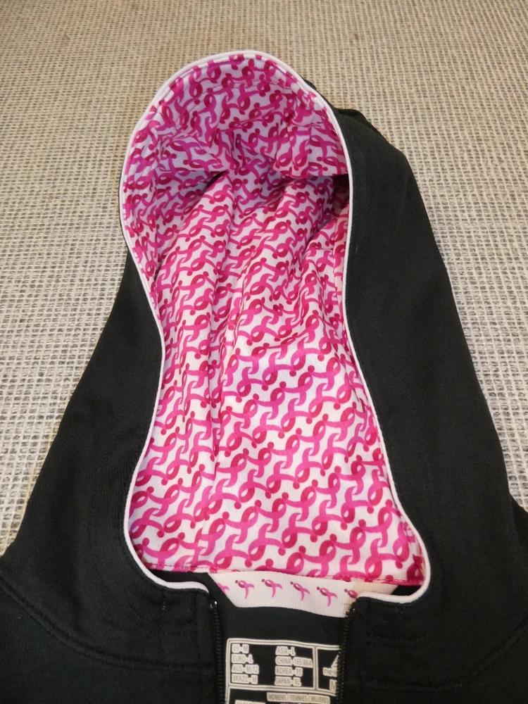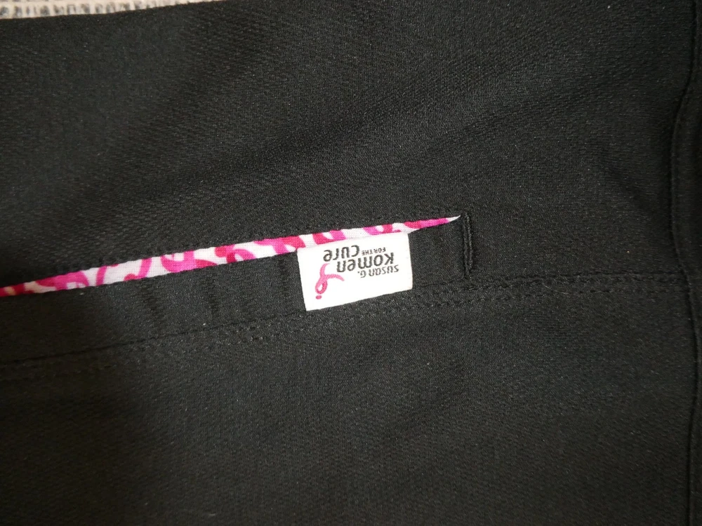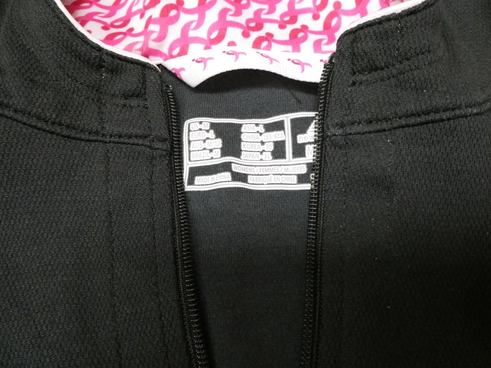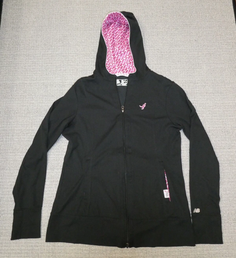 You are bidding on a New Balance women's black/pink/white Komen Race for the Cure logo print stretch lightweight full-zip long-sleeved hoodie jacket, size medium. This item is in great condition (no visible signs of wear and no rips, stains, etc.) and will come to the winning bidder from a smoke-free home. If you are interested in multiple items, I will be happy to combine shipping. Please email with any questions and Happy Bidding! Measurements: armpit to armpit: 18 inches; shoulder to hem: 24 inches. Material composition: 60% cotton; 40% polyester. yb2(24g)(c)