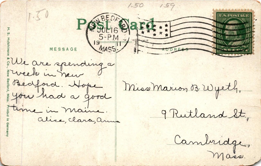 MAKE AN OFFER. THE MORE YOU BUY THE BETTER DEAL I WILL ACCEPT The postcard is a vintage image of the Free Public Library in New Bedford, Massachusetts, which was formerly the City Hall. The postcard was printed by H. S. Hutchinson & Co. in New Bedford and was made in Germany.
