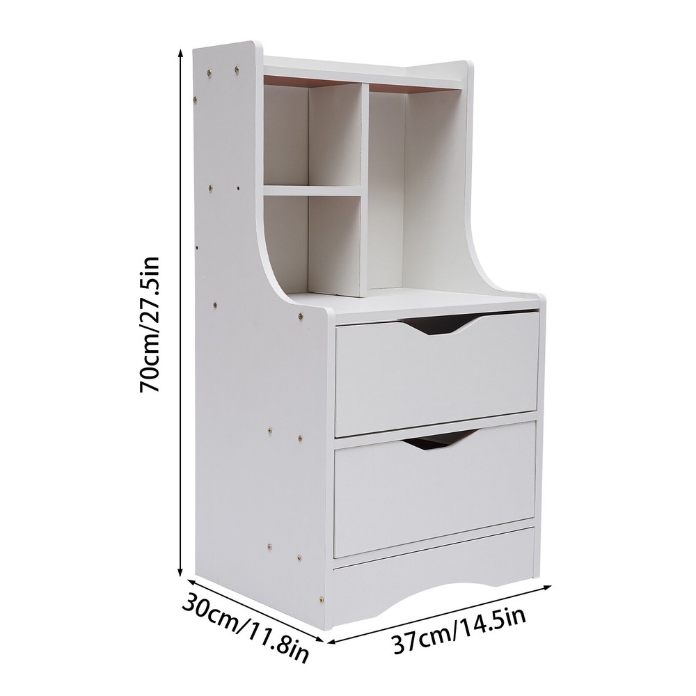 Specification Material: Medium Density Fiberboard Color: Wood Shape: Rectangle Style: Minimalist Scandinavian Surface Treatment: Veneered Surface Assembly Required: Yes Package Size: 80*40*10cm/31.49*15.74*3.39in Product Size: 37*30*70cm/14.57*11.81*27.56in Gross Weight: 8.7kg/19lbs Net Weight: 8kg/17.6lbs Package Included 1* Nightstand All Accessories for Installation Application This item can be used in bedrooms, living rooms, study rooms, dormitories, beauty stores, etc. for neatly storing cosmetics, books, decorations, jewelry, and other desktop accessories. Notes Please allow the slight color difference caused by the shooting light and 1-3cm error due to manual measurement. Please make sure you do not mind before you order. Bedroom Side Storage Set of Nightstand Beside End Table +2 Large Drawers NEW Wood End Table with Storage Shelf 2 Drawers Nightstand Side Table Cabinet Bedside Furniture Description Do you still struggle with a messy bedside? Do you always have items missing from your bedside? Don't worry, our nightstand will solve these worries for you. Its large storage capacity and partitioned design will keep your room tidy and your belongings organized. It will be the ideal choice for you. Specification Material: Medium Density Fiberboard Color: White Shape: Rectangle Style: Minimalist Scandinavian Surface Treatment: Veneered Surface Assembly Required: Yes Package Size: 80*40*10cm/31.49*15.74*3.39in Product Size: 37*30*70cm/14.57*11.81*27.56in Gross Weight: 8.7kg/19lbs Net Weight: 8kg/17.6lbs Package Included 1* Nightstand All Accessories for Installation Details Arched Bottom: The arched bottom is not only aesthetically pleasing but also makes the nightstand more stable . It also ensures that the drawers are at the right height to the floor for good moisture protection. Pre-Drilled Holes: Our nightstand has pre-drilled holes , so you don't need to drill additional holes on the boards. You only need to tighten the screws to complete the installation, which is very convenient. Wide Desktop: Its wide desktop (14.57*11.81) allows you to place more items, making it convenient for you to use. Smooth Edge: The corners and edges of this nightstand are sealed for smooth lines and rounded corners to prevent scratching. Full Pull-out Drawer : The full pull-out design of this nightstand, can display all the things in the drawer when pull out and make it more convenient for you to get them. C-shaped Baffle: The C-shaped baffle encloses the sides and back of the nightstand to prevent items from falling, and is also aesthetically pleasing. Recess Handle: The top of each drawer has a recessed handle that allows you to open or close it easily. Application This item can be used in bedrooms, living rooms, study rooms, dormitories , beauty stores, etc. for neatly storing cosmetics, books, decorations , jewelry, and other desktop accessories. Key Features Versatile Style: The combination of the natural, fresh wood color and the minimalist Scandinavian style can be well integrated into a variety of décor styles to create a stylish bedroom. Cozy Companion: It provides a place for your bedtime reading and sleep-aid scenting, and stores up your bedtime clutter. Choose a book from your nightstand at night, put a glass of milk on it, and enjoy a cozy bedtime. Small Footprint: It has a small footprint, making the most of vertical space. Only a small corner next to the bed can easily accommodate it. Large Storage Capacity: Every inch of space in this nightstand is well utilized. It has two drawers as well as storage shelves , providing you with plenty of storage space to meet your daily needs. Easy to Clean: It has a veneered surface with a smooth finish that is easy to clean. You can easily wipe off the dust with a damp towel. Sturdy and Durable : It is made of medium density fiberboard, which is sturdy, durable, and resistant to deformation to guarantee a long service life. Easy to Install: This nightstand is simple in construction and comes with the necessary accessories, we even provide you with a screwdriver so you can install it with ease. Keep Room Tidy: The fine partitioned design allows for organized and tidy storage . The bottom drawer can be used for personal items. The countertop and shelves can be used to store frequently used items and the open design allows for easy access and display. Excellent After-Sales Service: We aim to provide quality products and services. If you have any problems, please feel free to contact us. We will reply and solve the problem for you as soon as possible. Notes Please allow the slight color difference caused by the shooting light and 1-3cm error due to manual measurement. Please make sure you do not mind before you order. Payment Delivery details Terms of sales About us Contact us Payment We accept ebay payment 。 Fees such as import duties, taxes are not included in the item price or shipping costs. These charges are the buyer's responsibility. Delivery details Shipping: 2-9 working days to: USA Terms of sales We maintain high standards of excellence and strive for hundred percent customer satisfaction. Feedback is very important to us. We hope that you contact us immediately before you give neutral or negative feedback, so that we can address your concerns. It is impossible to address issues if we do not know about them! About us Your satis faction is our ultimate goal. We work hard to earn your trust and future business. Our certified technicians have tested each item before shipping. The unit comes with 1 year limited warranty on all manufacturing defects. a) If you receive a defective item, you may return it or ask for a discount. Please contact us within 14 days after you receive the package. b) What you returned must be intact and in its original packaging as re? u. Customer is responsible for shipping costs of the returned item. c) We will cover the cost of shipping back t with the shipping rate indicated in the registration page. We will send you a