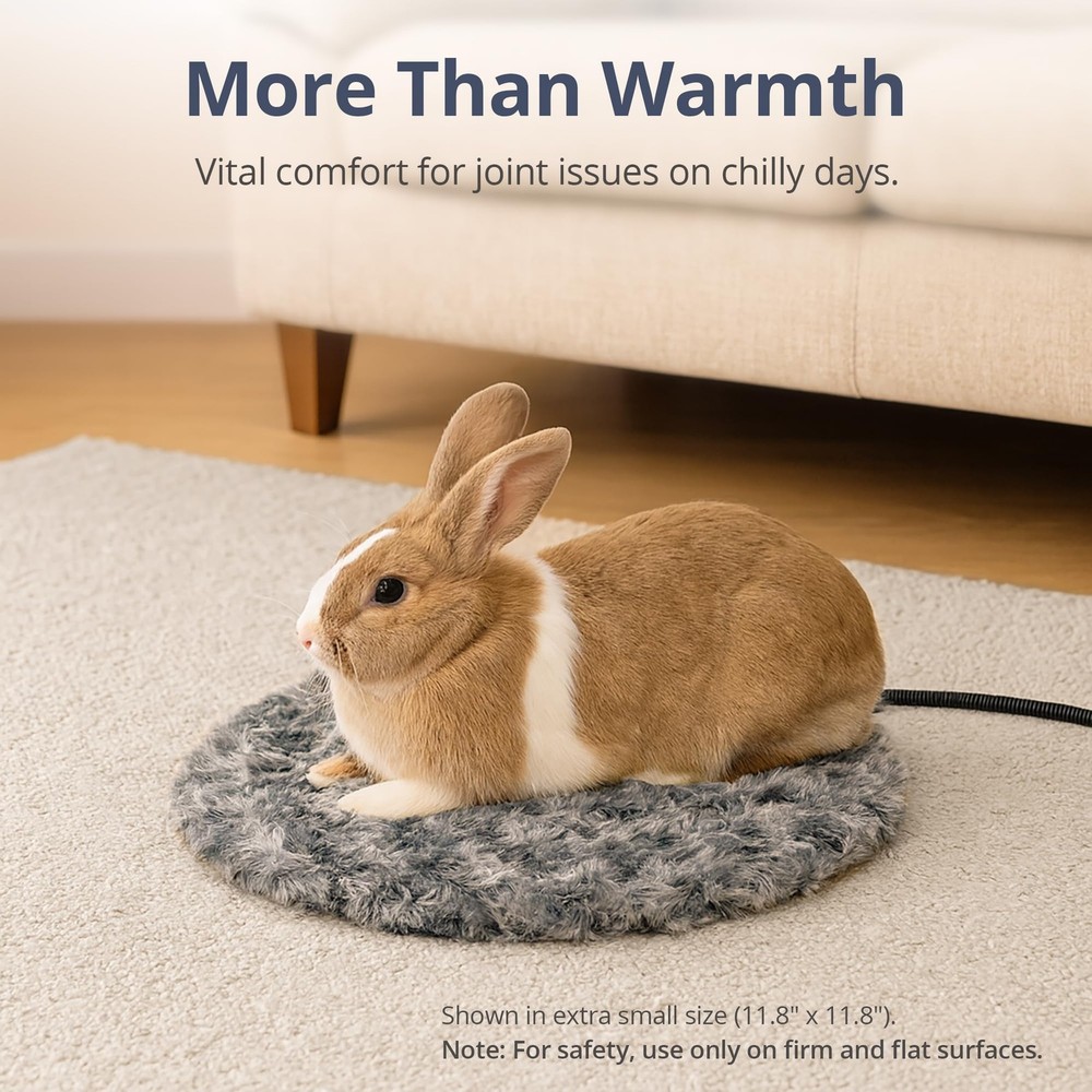 Adjustable Temperature Heated Cat Bed & Dog Heating Pad with Timer, Chew-Resistant Cord, Thick and Soft Cover, Indoor Pet Heating Pad, Diameter 11.8" Hassle-Free Control: Set temp from 6 heat levels (approx 86°F - 131°F) and auto-off function for safety via 4 timer options Pet Friendly Design: 7ft chew-resistant cord to prevent pets from chewing wires; waterproof PVC liner handles spills or messes easily Soft Rosebud Fabric Surface: Upgraded smooth and durable rosebud cover provides cozy warmth for pets and complements home decoration Fire-Retardant Construction: Built in a 7-layer protective structure, flame-resistant cotton and sealed tech for safety; MET Certified for peace of mind Multi-Size Available: Extra Small Size (diameter 11.8") perfect for small animals weighing around 6 lb, e.g., rabbits and kittens