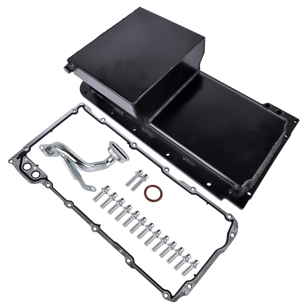 Details Description: 100% Brand new,never been used Increased 7 Quart oil capacity to keep your high performance engine systems fed properly Featured 3/8" thick pan mounting flange for enhanced strength Baffles keep oil from sloshing during hard acceleration resulting in oil starvation Professional installation in highly recommended(No instruction included) Specifications: Type: Front Sump Oil Pan Material: Aluminum Finish: Black Sump Location: Front Part Number: 81004-BK-F Sump Style: Wet Sump Depth: 6" Stroker Clearance: 4 1/8" Oil Filter Location: Remote Oil Capacity: 7 Quarts Will F it F ollowing M odels : Fits most LS engines, including LS1, LS2, LS3, and LS6 Chevrolet Small Block V8 GEN. III/IV (LS Based) 4.8 L / 5.3 L / 5.7 L / 6.0 L / 6.2 L Note: Will not fit LS7 or LS9 dry sump applications Package Includes : 1x Oil Pan 1x Oil Pan Gasket 1x Oil Pan Pickup Tube Mounting Hardware Shipping Policy Payment Method Returns Policy Shipping Policy -Please leave us your full name, your telephone number and detailed address when ordering. -We ship to your eBay or Paypal address. Please make sure your eBay and Paypal address is correct before you pay the order. -We try our best to pack the products as good and safe as possible ,so they always arrive in a good condition. Payment Method -We accept PayPal only. -All major credit cards are accepted through secure payment processor PayPal. -Payment must be received within 4 business days of auction closing. Returns Policy -We offer sophisticated products at a high technological level, with the highest possible quality and the most favorable price. -With these parts you can replace your defective parts simply plug and play. -Our warranty is valid for max. 24 months without mileage limitation. -Please compare carefully with Photos or OE number before purchasing the part. -Once a problem occurs with the purchased product, please do not hesitate to let us know with Ebay messages,we will offer you refund or replacement. Product View Details Description: 100% Brand new,never been used Increased 7 Quart oil capacity to keep your high performance engine systems fed properly Featured 3/8" thick pan mounting flange for enhanced strength Baffles keep oil from sloshing during hard acceleration resulting in oil starvation Professional installation in highly recommended(No instruction included) Specifications: Type: Front Sump Oil Pan Material: Aluminum Finish: Black Sump Location: Front Part Number: 81004-BK-F Sump Style: Wet Sump Depth: 6" Stroker Clearance: 4 1/8" Oil Filter Location: Remote Oil Capacity: 7 Quarts Will F it F ollowing M odels : Fits most LS engines, including LS1, LS2, LS3, and LS6 Chevrolet Small Block V8 GEN. III/IV (LS Based) 4.8 L / 5.3 L / 5.7 L / 6.0 L / 6.2 L Note: Will not fit LS7 or LS9 dry sump applications Package Includes : 1x Oil Pan 1x Oil Pan Gasket 1x Oil Pan Pickup Tube Mounting Hardware Shipping Policy Payment Method Returns Policy FAQ Shipping Policy -Please leave us your full name, your telephone number and detailed address when ordering. -We ship to your eBay or Paypal address. Please make sure your eBay and Paypal address is correct before you pay the order. -We try our best to pack the products as good and safe as possible ,so they always arrive in a good condition. Payment Method -We accept PayPal only. -All major credit cards are accepted through secure payment processor PayPal. -Payment must be received within 4 business days of auction closing. Returns Policy -We offer sophisticated products at a high technological level, with the highest possible quality and the most favorable price. -With these parts you can replace your defective parts simply plug and play. -Our warranty is valid for max. 24 months without mileage limitation. -Please compare carefully with Photos or OE number before purchasing the part. -Once a problem occurs with the purchased product, please do not hesitate to let us know with Ebay messages,we will offer you refund or replacement. FAQ On Mar 11, 2025 at 23:33:49 PDT, seller added the following information: