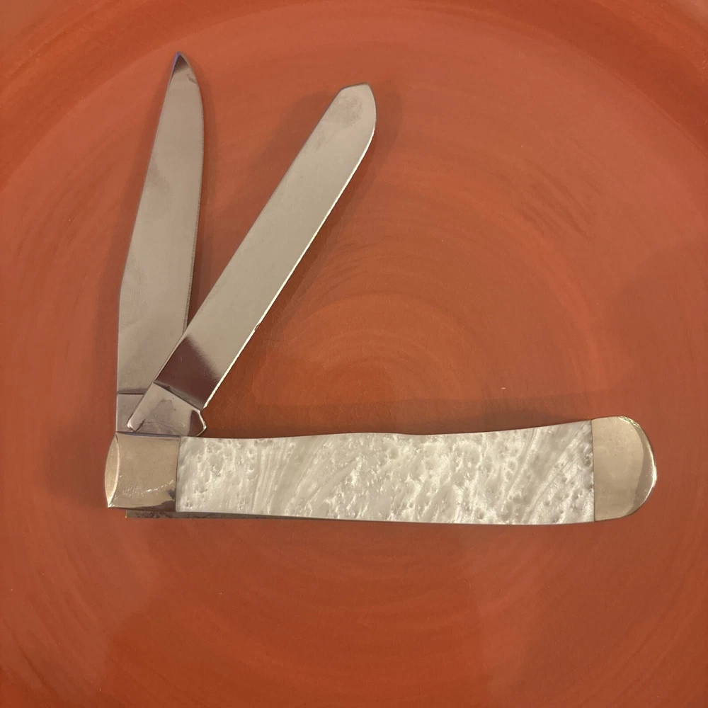 This CASE XX pocketknife is a must-have for any collector or outdoor enthusiast. With a blade range of over 4 inches and a clip and spey point blade type, this knife is as versatile as they come. The stainless steel blade material and celluloid handle material make this knife durable and comfortable to use, respectively. The manual opening mechanism and slipjoint lock type ensure safety and ease of use. This knife is ambidextrous and comes in a silver blade color. The CASE product line and original/reproduction status make this knife a high-quality, original piece. This knife was made in the United States and is a modern folding knife.
