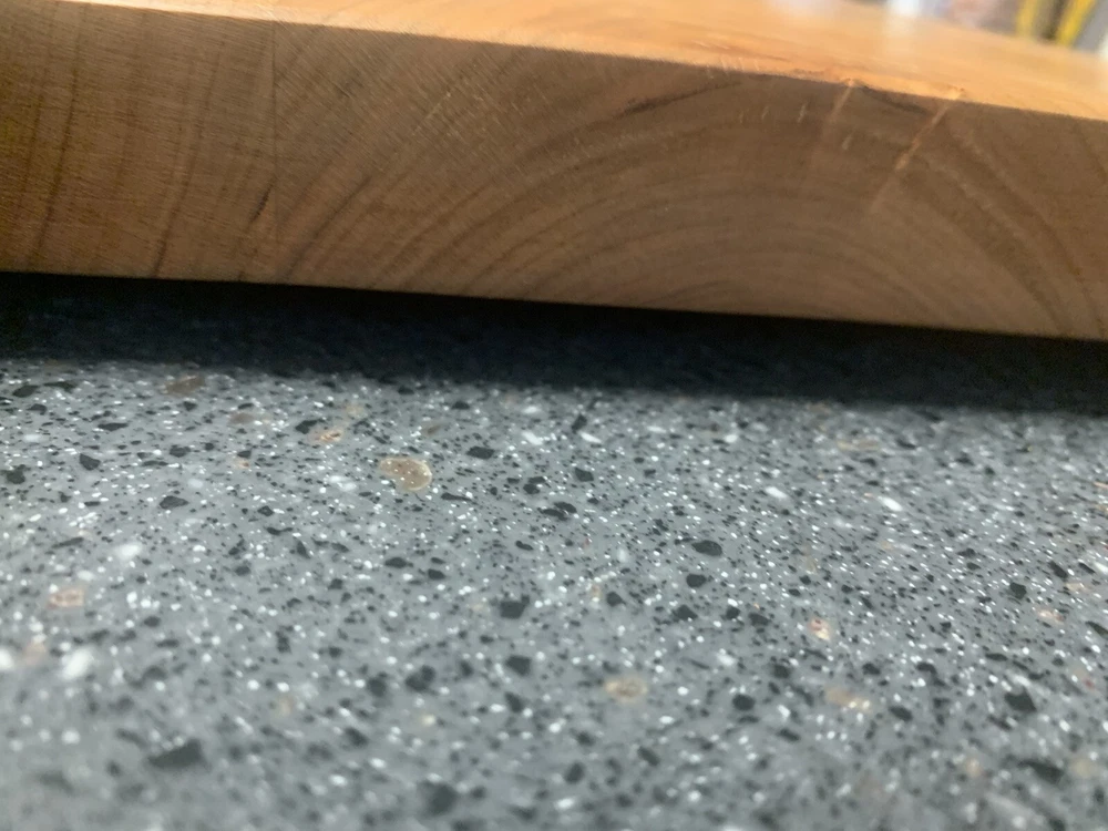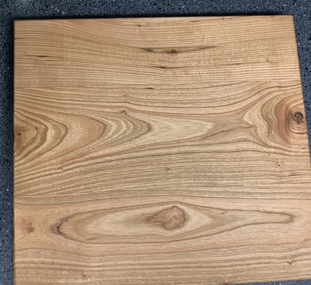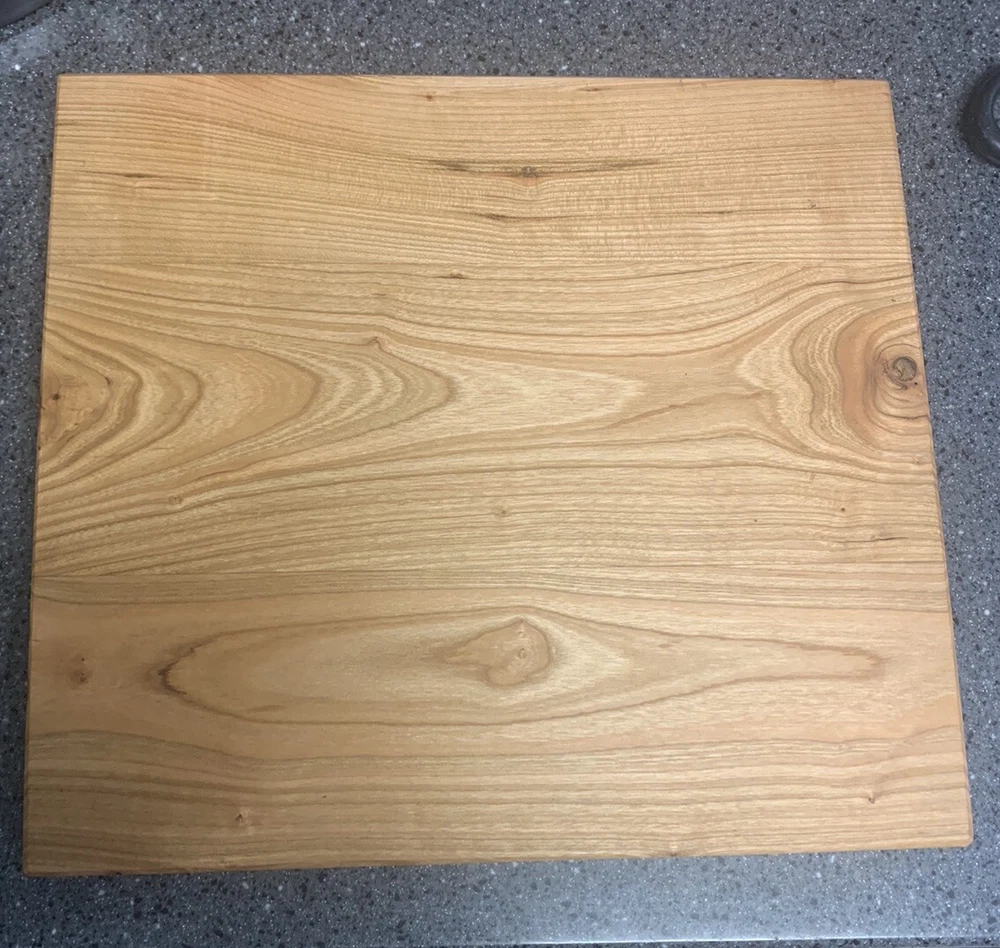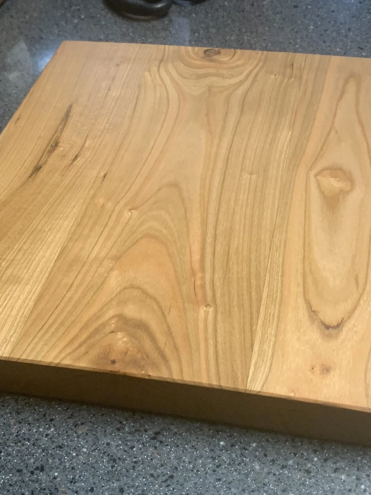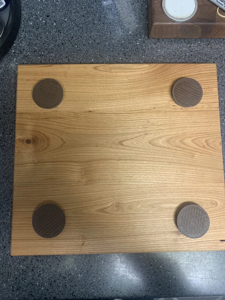 New Cherry Bread Board, 12 X 11, hard wood, one inch thick, weighs 3 and a half pounds. Feet are included for non skid on counter top but optional.