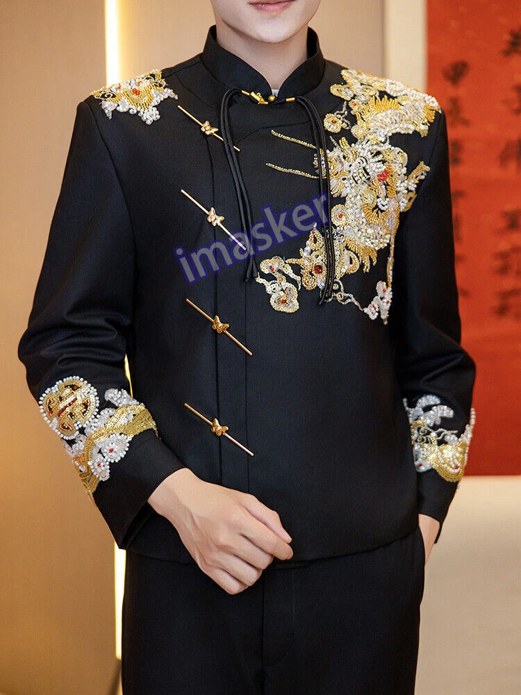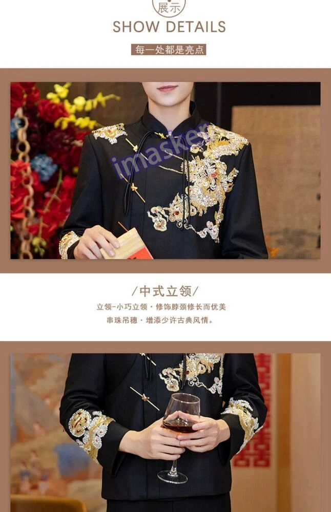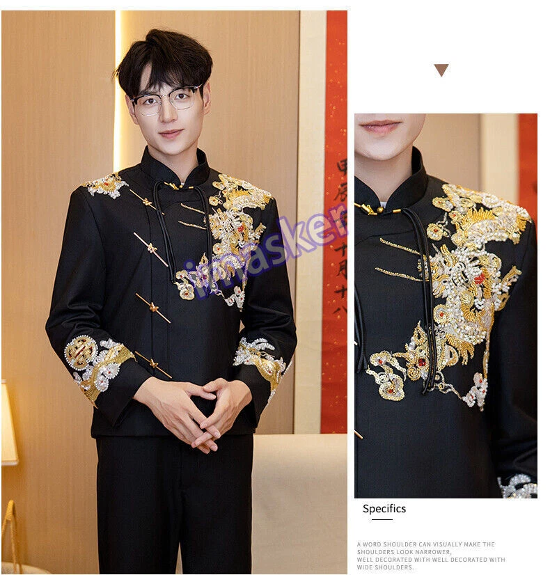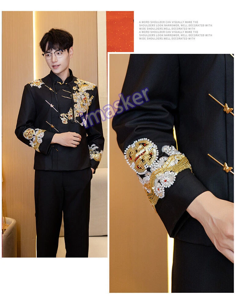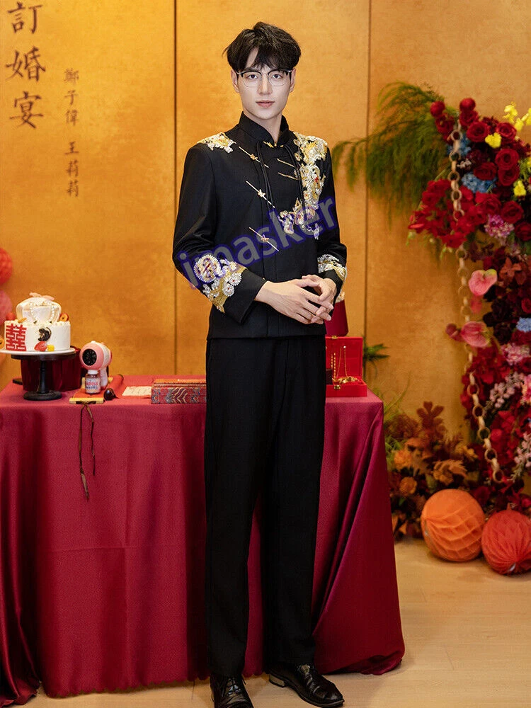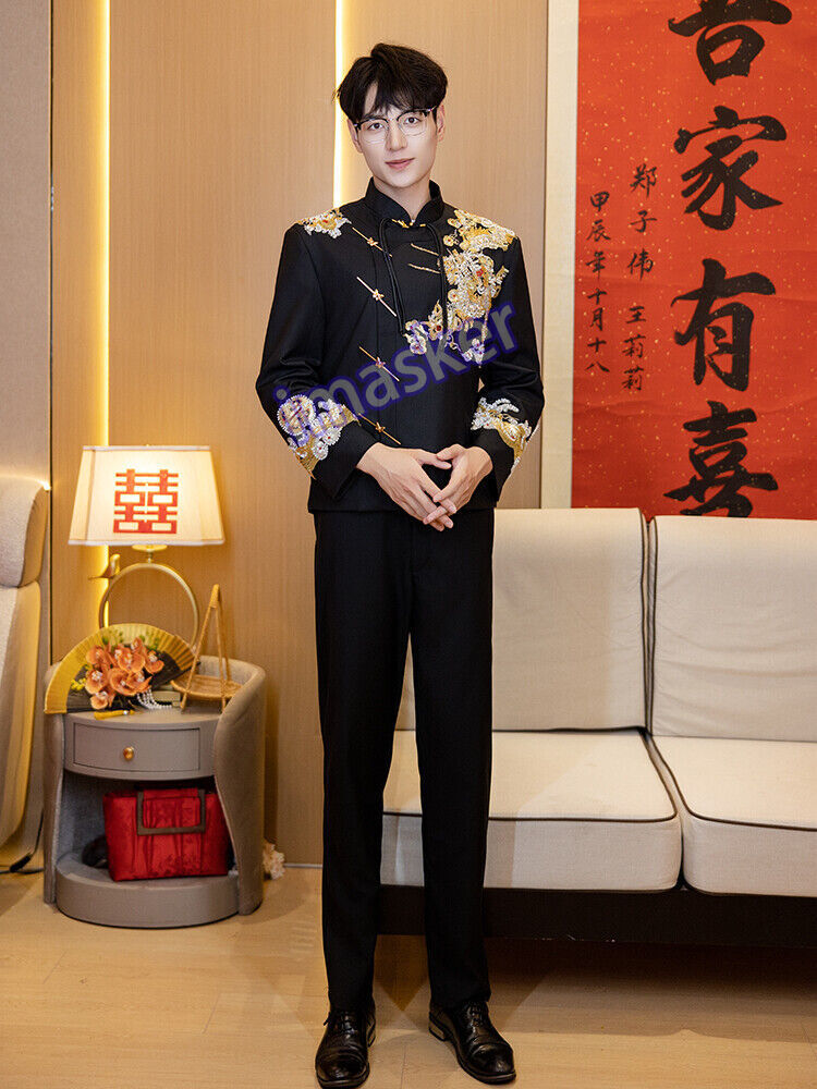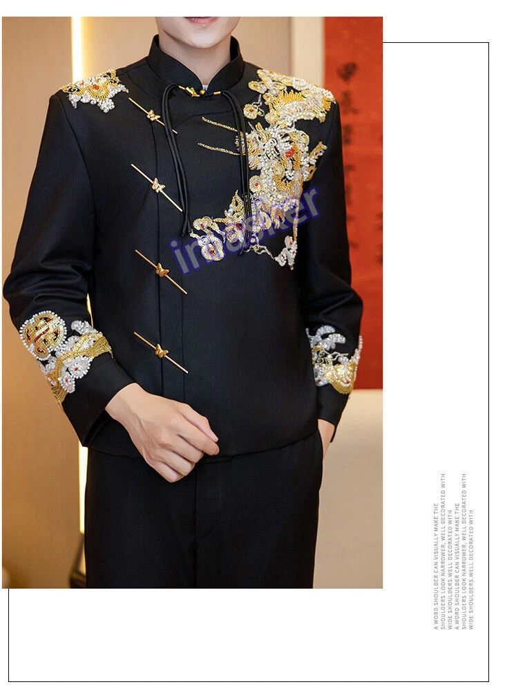 New Chinese Style Mens Zhongshan Suit Wedding Groom's Formal Dress Jacket Pants Set Include : 1x Men Jacket Pant Color:Black Material:Polyester Size: XS-L Friendly Tips: The size is measured by hands, please allow minor error of measurement. Photo color might be a little different from the actual product due to color display of different monitors. Payment 1. We accept PAYPAL only. 2. Payment must be made within 7 days of auction closing (Unpaid dispute will automatically open when item is not paid in 7 days). 3. PLEASE NOTE: SHIPPING&HANDING DOES NOT INCLUDE DUTIES, LOCATL TAXES OR ANY OTHER IMPORTATION FEES. 4. Please list your special requests (color, packages, value of declaration, etc.) in the EBAY NOTES SECTION when you make payment Shipping 1. We Ship to Worldwide 2. We ship your orders within 1-2 business days after the payment cleared. 3. Item shipped from China via china Post Airmail, reach most of the countries within 2 to 4 weeks. 4. Delivery time depends on destination and other factors, it may takes up to 20 days. If you don't receive the item after 25 days,please contact us, we'll investigate and solve the delivery problem. 5. Import duties, taxes, and charges are not included in the item price or shipping cost. These charges are the buyer's responsibility. Please check with your country's customs office to determine what these additional costs will be prior to bidding or buying. Warranty Return 1. Customer satisfaction is our top goal. All products are quality checked. They are new and in good condition when shipped to our customers. If product is defective or damage upon arrival, or wrong product shipped, please contact us immediately. Returns accepted within 14 days of delivery date and item must be in original new condition, not worn or altered in any way with attached tags & wrap. Otherwise deal is final. Return shipping must be paid by buyer. 2. Please contact us first if you have anyproblems/questions/concerns. We will be happy to resolve any issues you may have in a cordial and friendly manner. 3. We appreciate your Positive Feedback, and will do the same in return. PLEASE DO NOT leave negative feedback without first communication with us. Please allow max 24 HOURS for us to respond About Feedback We maintain high standards of excellence and strive for 100% customer satisfaction! Feedback is very important to us. We request that you contact us immediately BEFORE you give us neutral or negative feedback, so that we can satisfactorily address your concerns.It is impossible to address issues if we do not know about them! Contact Us We care about our valued customers, if you have any questions, please feel free to contact us in EBAY MESSAGE, our Customer Service staffs will be very pleasure to reply you in 24 Hours.