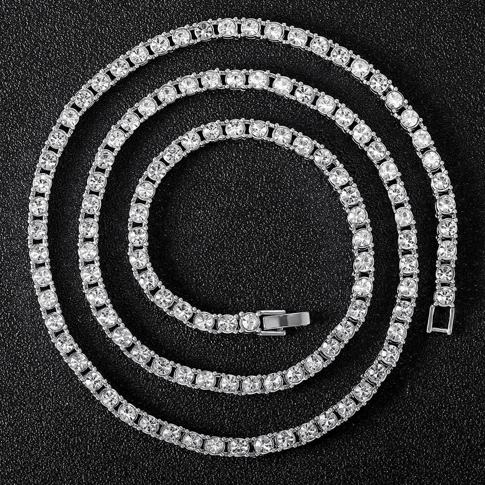 New Classical 4mm Tennis Chain Iced Out Bracelet Necklace Men Fashion Hip-hop Je Details: Length:8inch(20cm) Â 18inch(45cm) Â 20inch(50cm) Â 24inch(60cm) Plated:UV Stone:5A+ Rhinestone Mental:Zinc Alloy Shipping Fast Shipping Worldwide Returns We accept returns 30 days from the package received. Payments All payments are accepted via PayPal. Thank you for shopping