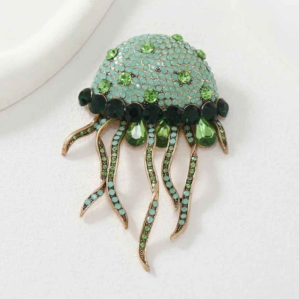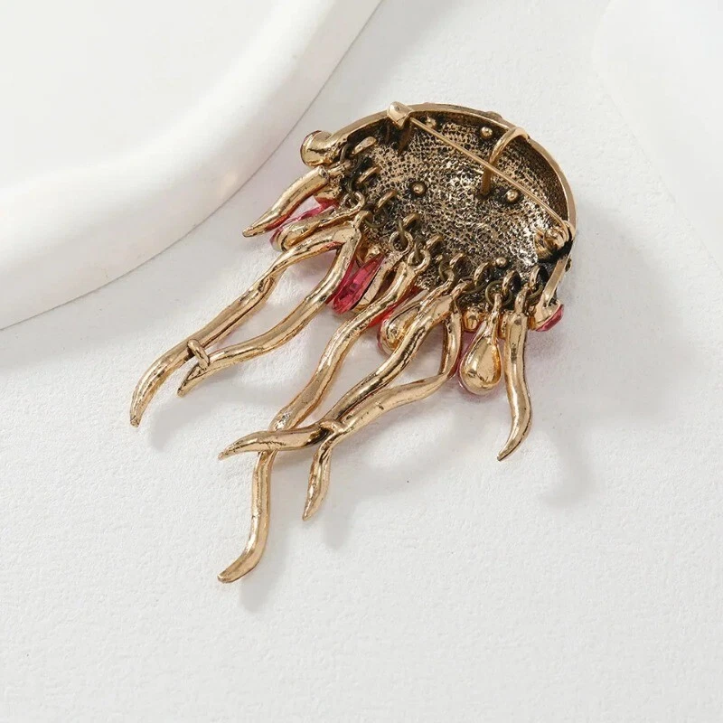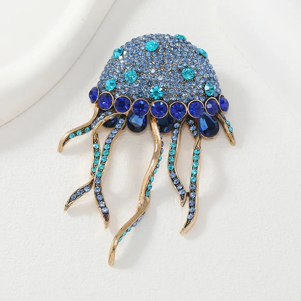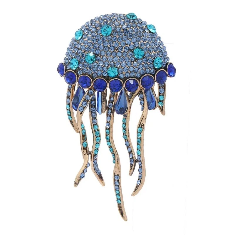 New Creative Tassel Full Crystal Jellyfish Brooch Cute Women Winter Sweater Pin