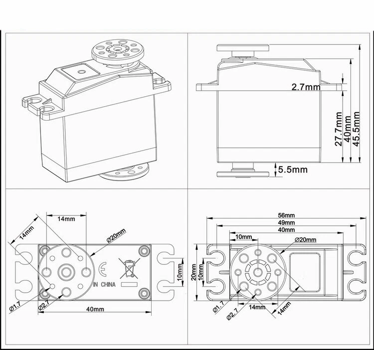 Product Description If you have any questions, please contact customer service first, do not open disputes easily, thank you! Specification : Name:SPT5325LV-360 Brand:SPT servo machine Potentiometer:Mechanics Motor:iron core Voltage range:4.8V/6.0V Neutral point:1500μs Signal frequency:330Hz PWM voltage:3.3V-5.0V Feedback angle:None Operating temperature:-10℃-50℃ Cycle time:20ms Deadband:4μs Default direction:CCW Yes/No Lock:Lock Remote angle:Continuous rotation d° 500-2500μs Angle:Linear change/°/PWM Static current:50mAh Rated current:1.2A Output gear:Futaba 25T Gear material:All-metal gear Housing material:Half aluminum housing Bearing:2BB Connector wire length:260MM Line definition:Brown-/red+/orange s Running speed:4.8V-44rpm, 6.0V-55rpm Package includes : 1*SPT5325LV-360 dual-axis servo 2*Metal gear Note : Only include the above package products About Us We accept all payments authorized by eBay. About Us We accept all payments authorized by eBay. powered by