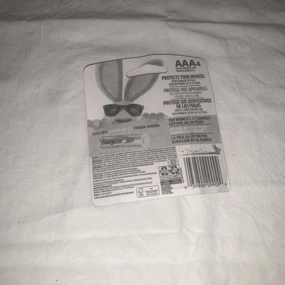 The product is a pack of four Energizer MAX AAA alkaline batteries. These batteries have a voltage of 1.5V and are compatible with devices that require AAA batteries. The chemical composition of the batteries is alkaline. The pack includes 4 lithium ion batteries, providing long-lasting power for various consumer electronics.