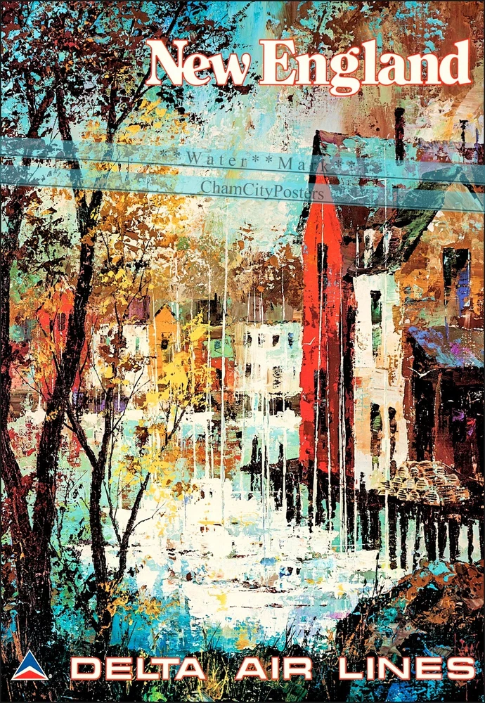 New England 1950 Delta Air Travel ( Note: This particular artists work is very different from what we usually see. His work was originally paintings, and they were not as bold, defined and sharp, they were more Impressionistic style oil paintings ) Vintage Poster Print Retro Style Restored Art ***We offer Free US Postage or Reduced Postage for Canada & Worldwide. **No charges for additional prints worldwide. ***These are not framed or stretched or mounted NOTE:**Delivery dates shown are only "Suggested" Order Early To Avoid Post Delay Dramas **Read Please: The print looks best with a nice mat (passe - partout or passepartout ) and frame. These prints are the exact proportion as the original and will not be stretched to fit the paper or canvas...this would cause a distorted print The image will be the exact aspect ratio as per the original poster, so there might be more white on the top and bottom, or side to side. Options available..use the drop-down menu * Watermark will not be on your image. *Cloth Canvas an artist canvas used also in museums and art galleries *Photo Gloss Paper is a high-quality Professional Photo paper *Matte Photo Paper is a great solution if you do not want a Gloss, this paper is great with colors *Luster Photo Paper this photo paper is neither glossy or matt. Glossy paper has a smooth texture, luster paper is slightly textured. This option is a good choice for something in between Metallic, Photo Gloss and Matte *Metallic Pearlescent Photo Paper is a very high-quality paper with a Pearlescent sheen, a glossy finish, and unique metallic appearance, these prints have extra visual interest and depth. This paper uses a combination of film laminate layers that produce striking, dimensional, lasting images on an ultra-bright background. The effect is sometimes described as "chrome on paper." This is NOT a metal plaque, it is a photo paper This poster print will be shipped in a sturdy container. We will ship usually within 24 business hours of payment, except for weekends or US Holidays If there is a question, please do contact me All is done to send you the best quality poster image. Don't forget to check out the Sales. There is a great Buy 3 Get 1 Free Offer!! Shipped with no extra postage..Worldwide! There are a variety of reasons why the images on your monitors don't match each other. The simplest is that each monitor is different; even monitors with the same model won't have colors that match up perfectly We are located and ship only from the USA The art is not AI generated, these are restored prints from originals READ THIS CAREFULLY: As o f September 2024 ALL orders 4 and over will be shipped US Priority Post at no extra cost to you until end of year !