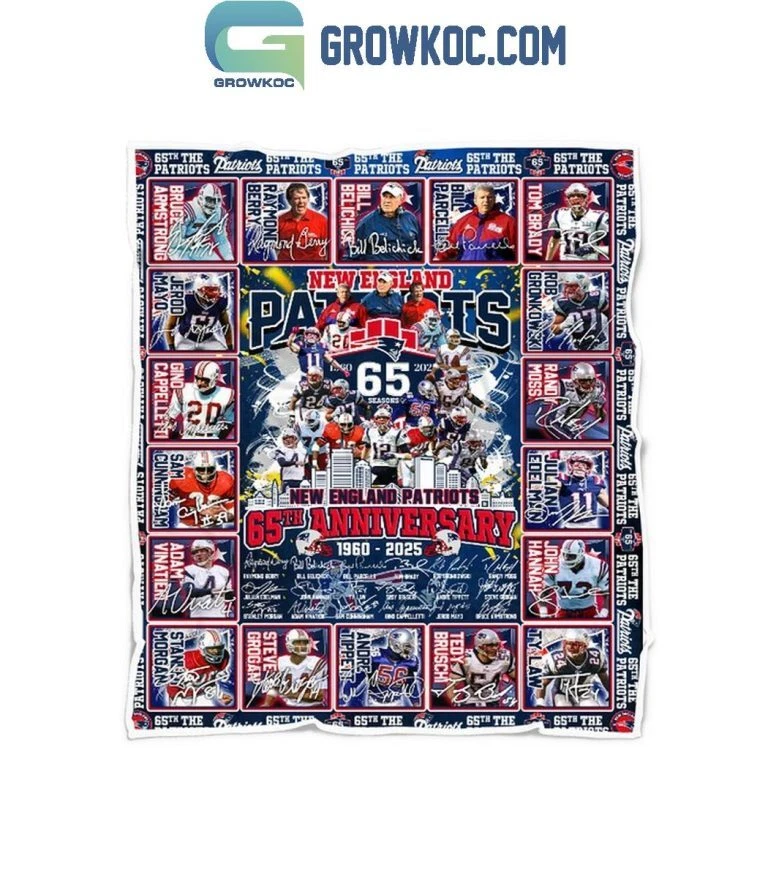 New England Patriots 65 Seasons 65th Anniversary 1960-2025 Sherpa Blanket Quilt