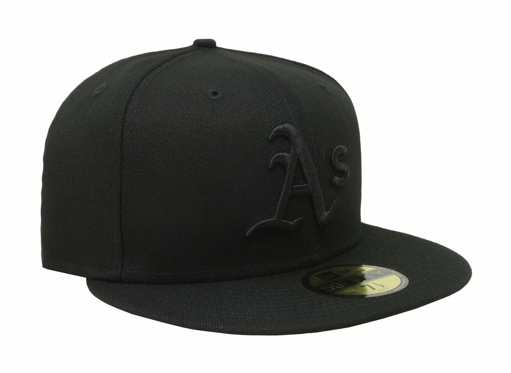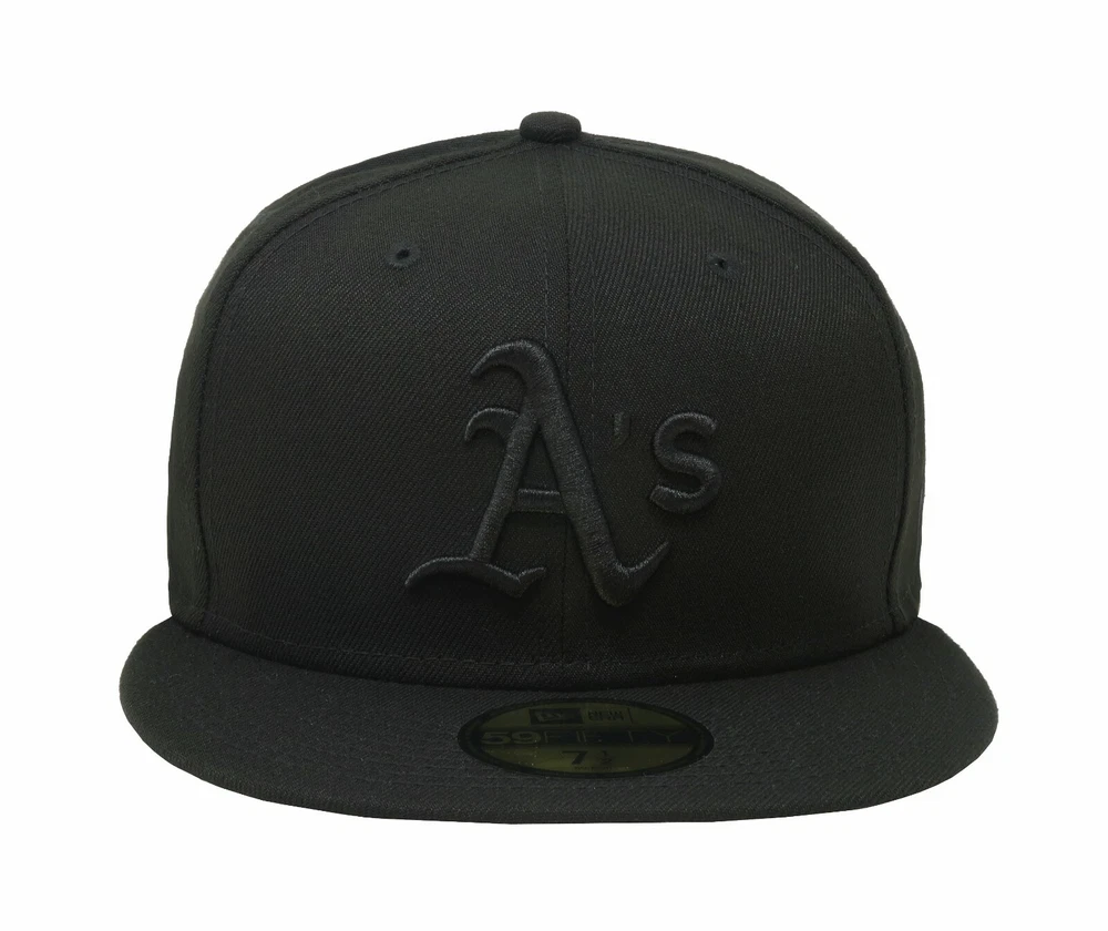Department:MenSport:Baseball-MLBTeam:Oakland AthleticsMPN:10047323Product Line:New Era 59FiftyMaterial:PolyesterSeason:Fall, Spring, Summer, WinterFeatures:FittedBrand:New EraStyle:Baseball CapTheme:Classic, SportsCountry/Region of Manufacture:UnknownColor:BlackOccasion:CasualModel:New Era 59Fifty Black on BlackFabric Type:RayonLeague:Major League (MLB)