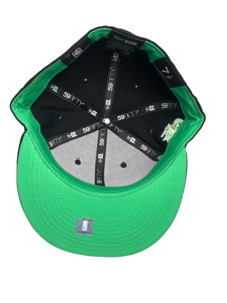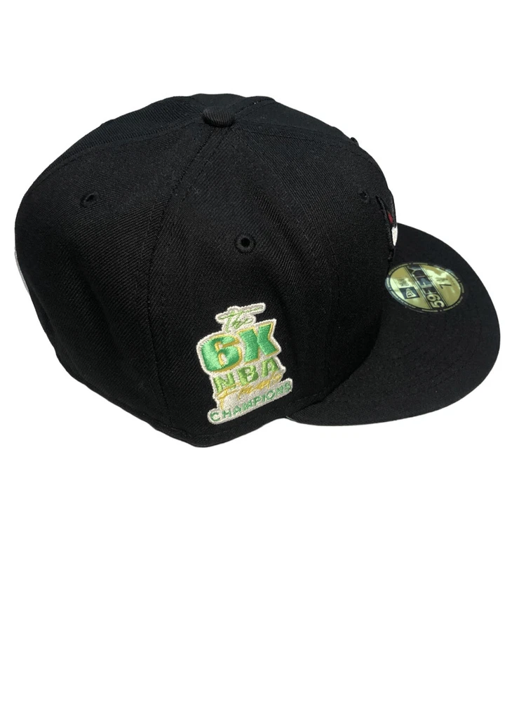 New Era Chicago Bulls Citrus Pop 59FIFTY Hat Cap Size 7 1/2 New with tags Color Black with green underbrim Embroidered 6X NBA Finals Champions on side, Chicago Bulls logo on front, New Era Logo on side and NBA logo on back
