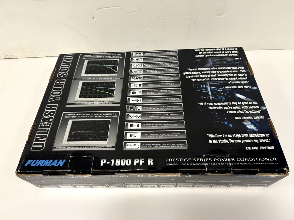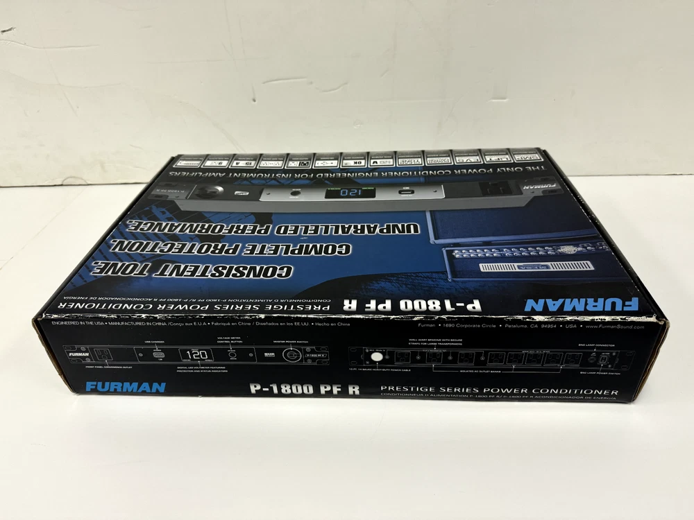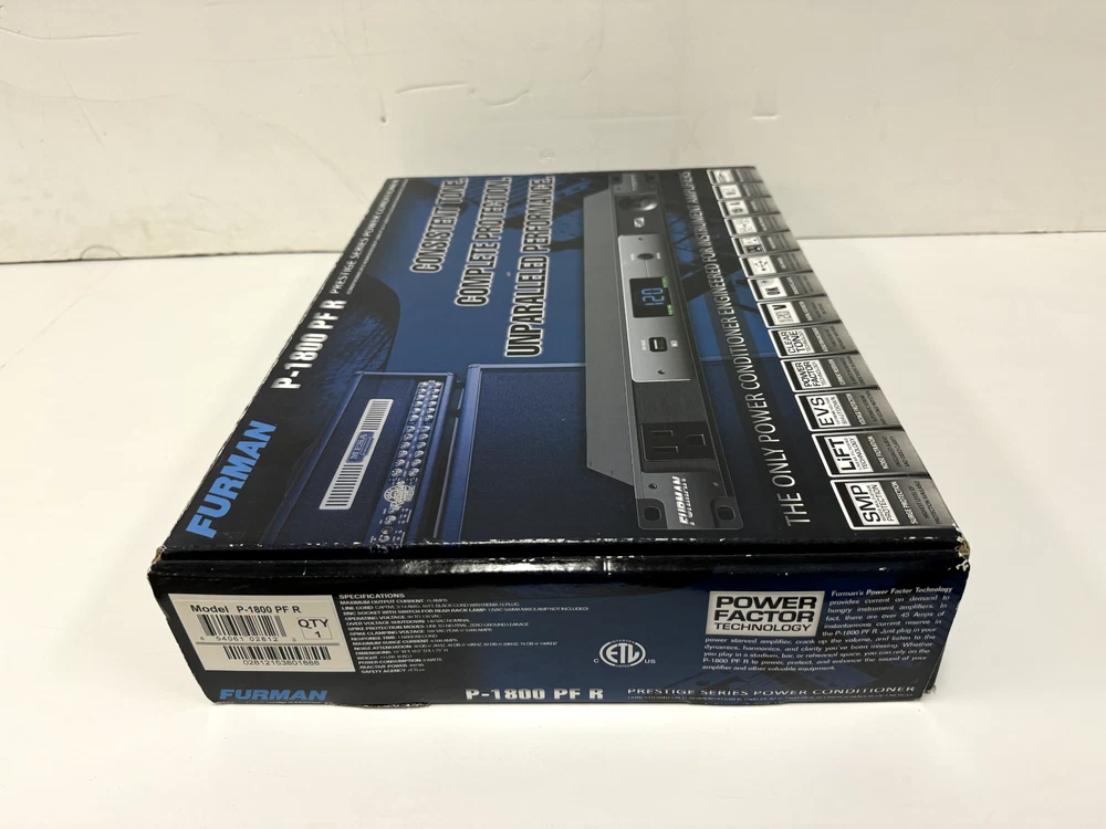 The Furman P-1800 PF R is a premier-quality 15-amp power conditioner explicitly designed for high-current equipment, such as amplifiers and powered studio monitors. Furman's cutting-edge Power Factor leverages a 45-amp peak-current reservoir to give your high-current gear the headroom it needs to operate at maximum efficiency, even when pushed. The P-1800 PF R boasts superior line-noise filtration and pro-level surge protection. You'll also benefit from Furman's Clear Tone Technology and Linear Filtering Technology, which add an extra layer of tailor-made AC noise filtration for your instrument amplifiers. Your power-hungry gear needs stable, protected, and filtered power, and the Furman P-1800 PF R stands ready to meet the demand. Power Factor ensures maximum operating efficiency Amplifiers need a lot of juice for optimal performance, especially when they're pushed. Thanks to Furman's revolutionary Power Factor, the P-1800 PF R accounts for this, supplying you with a 45-amp peak-current reservoir that minimizes the adverse effects of line impedance on your high-current gear. In other words, when you push your amp, the P-1800 PF R gives it the headroom it needs to function at maximum efficiency. Use the P-1800 PF R with guitar amplifiers; the P-1800 PF R will keep your amp's tone consistent, regardless of where you're playing or the distance from the venue's power panel. Another reason why the Furman P-1800 PF R is a shoo-in for guitar-amplifier duties is its baked-in Clear Tone Technology. Clear Tone Technology works in tandem with Power Factor and Linear Filtering Technology to create an extra layer of AC noise filtration that's tailor-made for instrument amplifiers. The P-1800 PF R's fine-tuned circuits will uncover every nuance of your guitar tone, ensuring ear-grabbing harmonics, hyper-focused clarity, and outstanding dynamic response for days. Furman P-1800 PF R Power Conditioner Features: Premier-quality 15A power conditioner designed specifically for high-current equipment An ideal power conditioning solution for amplifiers and powered studio monitors Provides superior line-noise filtration and pro-level surge protection Cutting-edge Power Factor leverages a 45A peak-current reservoir to give your high-current gear maximum headroom Clear Tone Technology and Linear Filtering Technology add an extra layer of AC noise filtration for instrument amplifiers Keeps your amp's tone consistent in any venue and at any distance from the power panel