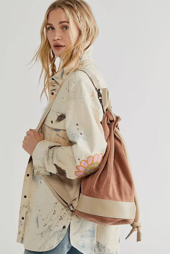 The perfect slouchy sling bag for everyday toting, featured in a bucket silhouette and unstructured style with a drawstring closure, leather accents, and an adjustable shoulder strap. Top handle Exterior pocket Partially lined interior Removeable shoulder strap FP Collection Artisan crafted from fine leathers and premium materials, FP Collection shoes, bags and belts are coveted for their signature vintage aesthetic. Care/Import Import Measurements for size Width: 15 in Depth: 8.7 in Shoulder/Strap Drop: 18.9 in Height: 16.1 in Contents Leather Brand new items 100% Authentic Line through Name tags (Inside tag) only done to prevent store returns BAGS