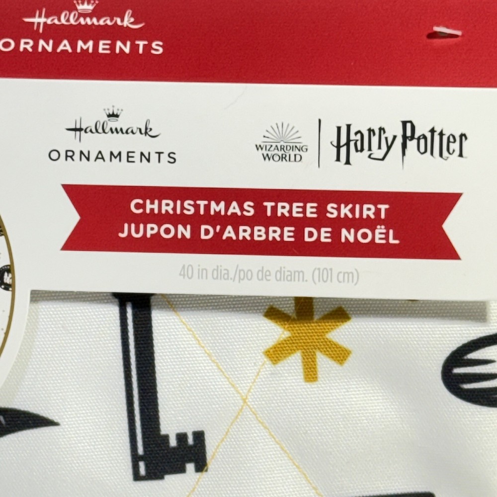 Celebrate Christmas with this Hallmark Harry Potter Wizarding World quilted round Christmas tree skirt. It measures 40 inches and features graphics from the Harry Potter story. Brand new with tags.