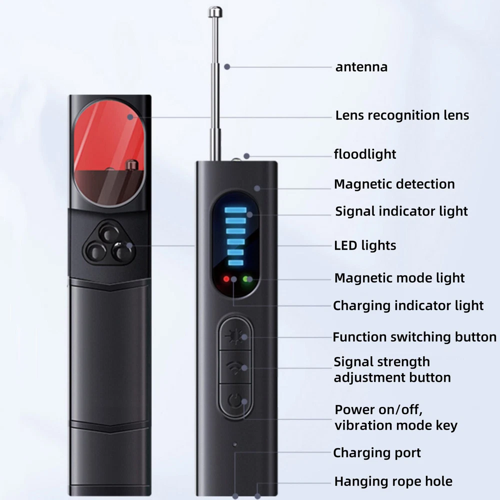 Product Description New Hidden Camera RF Signal Detector GSM Audio Bug Finder Scanner Tracker Features: 1. Multi-Function Hidden Camera Detector: Hidden Device Detector Has Powerful Detection Functions: 1. Hidden Camera Detector: Can Detect And Identify Various Hidden Cameras In Your Life; 2. Radio Frequency Detector: Detect Active Radio Frequency Bugs Transmitters, Such As Transmitting Cameras, GPS Trackers, Wireless Audio Errors; 3. Magnetic Field Detection: Can Detect The Presence Of The Magnetic Field Generated By The Gps Tracker. 4. Night Vision Camera Detection: Find Hidden Cameras With Night Vision Capabilities 2. Comprehensive Privacy Protection: The Camera Detector Is Equipped With 5-Level Sensitivity Adjustment Function. By Adjusting The Sensitivity Button, The Detection Range Can Be Flexibly Expanded Or Reduced To Meet The Needs Of Different Environments. The Spy Camera Detector Also Has Touch Alarm Function. If Someone Breaks In During The Night And Comes Into Contact With The Detector. It Sounds An Alarm To Ensure Your Safety And Privacy. 3. Lightweight And Durable: The Invisible Camera Detector Won' T Weigh You Down. With Its Efficient Design, Our Detector Provides A Simple And Hassle-Free Experience And Is Very Easy To Carry And Use. You Can Use It In Locker Rooms, Conference Rooms, Bathrooms, Hotels, Rental Houses, Offices And Many Other Places To Protect Your Personal Privacy And Important Information Anytime And Anywhere 4. Efficient Anti-Espionage Technology: Our Hidden Camera Detector Has 5 Levels Of Sensitivity And 4 Professional Modes. It Is A Professional-Grade Anti-Spyware Device Designed To Help Users Detect And Prevent Hidden Cameras, Ensuring Your Privacy Through Advanced Technology And Exquisite Design. You Can Use It In Various Environments With Confidence 5. 100% Customer Satisfaction: We Value Our Customers And Insist On Product Quality. If You Have Any Questions, You Can Contact Us. Our Customer Service Team Is Online 24 Hours A Day And Will Provide You With Satisfactory Solutions. 6. LED Lighting For A Variety Of Situations: Short Press The Mode Key To Switch To The Lighting Mode Can Be Used As A Flashlight To Deal With Various Emergencies 7. Ai Intelligent Chip Strong Anti-Interference More Accurate: Innovative AI Intelligent Chip, Performance Upgrade, Lower Power Consumption, Longer Battery Life Professional Detection Of Radio Waves 8. Ultra-Remote Detection Telescopic Gain Antenna: Not Afraid Of Complex Large Space, Double The Signal Strength And Extend The Signal Antenna, Accurately Lock The Hidden Danger Position Specifications: Charging Interface: Type-C Antenna Gain: -56db Sensitivity: 5 Levels Adjustable Receiving Frequency Range: 1mhz To 6.5ghz Signal Detection Range: 0.05m-8m Battery: 1*3.7V 160mAh Battery(With Battery) Package Includes: 1* Detector 1* Data Line 1* Lanyard 1* Box 1* Instruction If you have any questions, please feel free to contact us via ebay. We usually respond within 24 hours. Payment Shipping Returns Contact Us We accept all verified payments from ebay. Orders will be shipped after receiving cleared payment. Payment due within 7 days after auction ends and for buy it now listings. We ship most of our orders within 24 hours, and may up to 48 hours for. If you want faster shipping way. Please contact us before making payment. Sometimes due to problems with our transportation company system, your shipping information may be delayed to update. We recommend that you try again after 3-4 days. If you still haven't checked the shipping information, you can contact us by ebay message. Always believe we can figure things out with communication, if it comes to return, the pacakge must be intact and the same as you receive. If you have any questions, please feel free to email our service specialists 24 Hours a Day, 7 Days a Week. We will reply you ASAP. Return/refund is accepted within 30 days after the buyer receives the item. NO exchange will be accepted after 30 days from the date when the item is received. Please contact us first before returning your product!!! If you have any questions, our Customer Service staffs welcome you to email us. We strive to answer all questions and resolve any problems as quickly as possible. You can contact us 7*24, we will reply at the first time, and we will surely solve your problems. Note: 1.We try our best to reply to your emails as soon as possible, however, due to high volume of daily incoming emails and time zone difference, we may not be able to reply your emails immediately. Please allow 1 business days for us to response. If you do not receive any reply from us, please check your email ensuring your mailbox has not reached full size. 2.Due to some ISP SPAM filter settings, you may not be able to receive our replies; if you have problems receiving our emails, you may need to use a different email account to contact us. 3.Please give us the opportunity to resolve any problem. We understand the concerns and frustrations you might have, and will try our best to resolve the issues. Please email us before leaving any negative feedback or open any dispute on PayPal. 4.We care about our valued customers, and will always try to help you. So if you have any problems, please e-mail us immediately. Payment We accept all verified payments from ebay. Orders will be shipped after receiving cleared payment. Payment due within 7 days after auction ends and for buy it now listings. Shipping We ship most of our orders within 24 hours, and may up to 48 hours for. If you want faster shipping way. Please contact us before making payment. Sometimes due to problems with our transportation company system, your shipping information may be delayed to update. We recommend that you try again after 3-4 days. If you still haven't checked the shipping information, you can contact us by ebay message. Returns Always believe we can figure things out with communication, if it comes to return, the pacakge must be intact and the