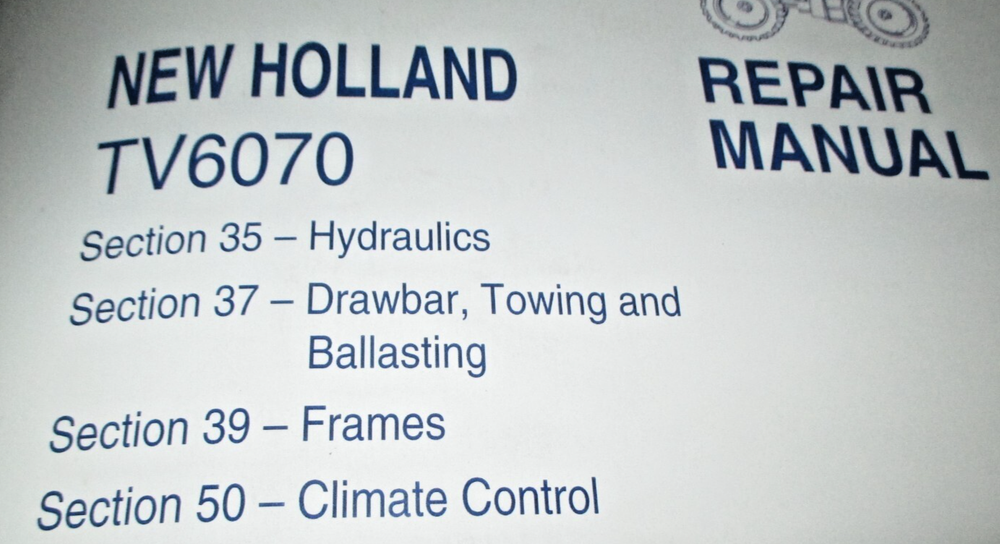 Original! New Holland Dealers Repair Manual for the "HYDRAULICS, DRAWBAR/TOWING/BALLASTING, FRAMES and CLIMATE CONTROL" used in the Model TV6070 Tractors SEE PICTURES for index of what is covered. Dated/Issued/Copyright 2008 Manual number 84127313 It has around 500 pages. Inventory no. NH-8141 This manual has detailed repair information with lots of pictures/drawings. The same genuine New Holland manual your dealer used to repair these machines. **(see pictures for index)** **NOTE: MEDIA SHIPPING SOMETIMES MAY TAKE UP TO TWO WEEKS. IF YOU NEED IT FASTER THAN THAT OTHER SHIPPING OPTIONS ARE AVAILABLE UNDER THE "SHIPPING and PAYMENTS" TAB.** We Ship Worldwide! Any package shipped to a location outside the USA, will pay higher shipping . International Buyers – Please Note : Import duties, taxes, and charges are not included in the item price or shipping cost. These charges are the buyer's responsibility. Please check with your country's customs office to determine what these additional costs will be prior to bidding or buying. If you are interested in Tractors & Farm or Construction Equipment, please check out my store & other auctions! THANKS FOR LOOKING!