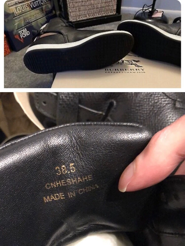 New In Box - Authentic Burberry high top sneakers. Elevate your casual style with these black leather high top sneakers from Burberry. Designed for comfort and performance, these sneakers feature a high top shaft style and are perfect for boxing enthusiasts. The US shoe size is 8.5, making them ideal for women looking for a stylish and functional addition to their wardrobe.