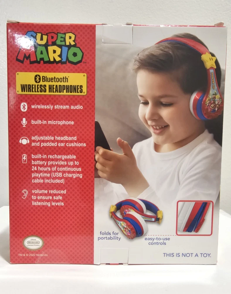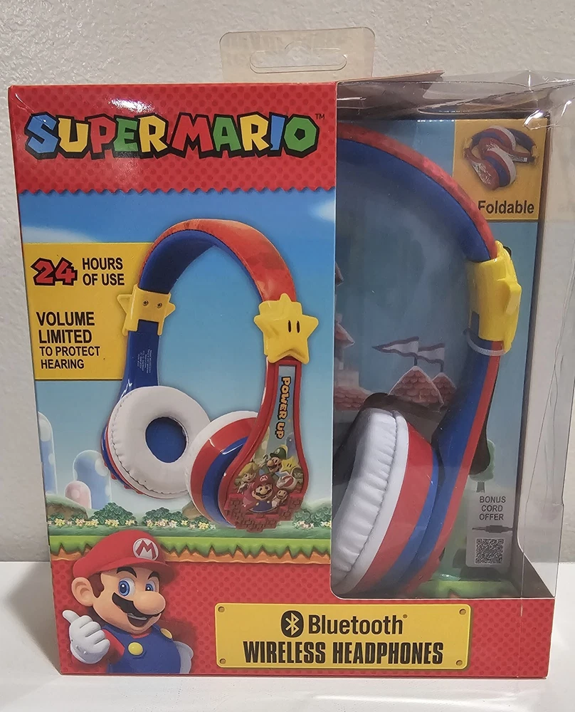 New In Box Super Mario Wireless Bluetooth Headphones Red 4 Available A/13