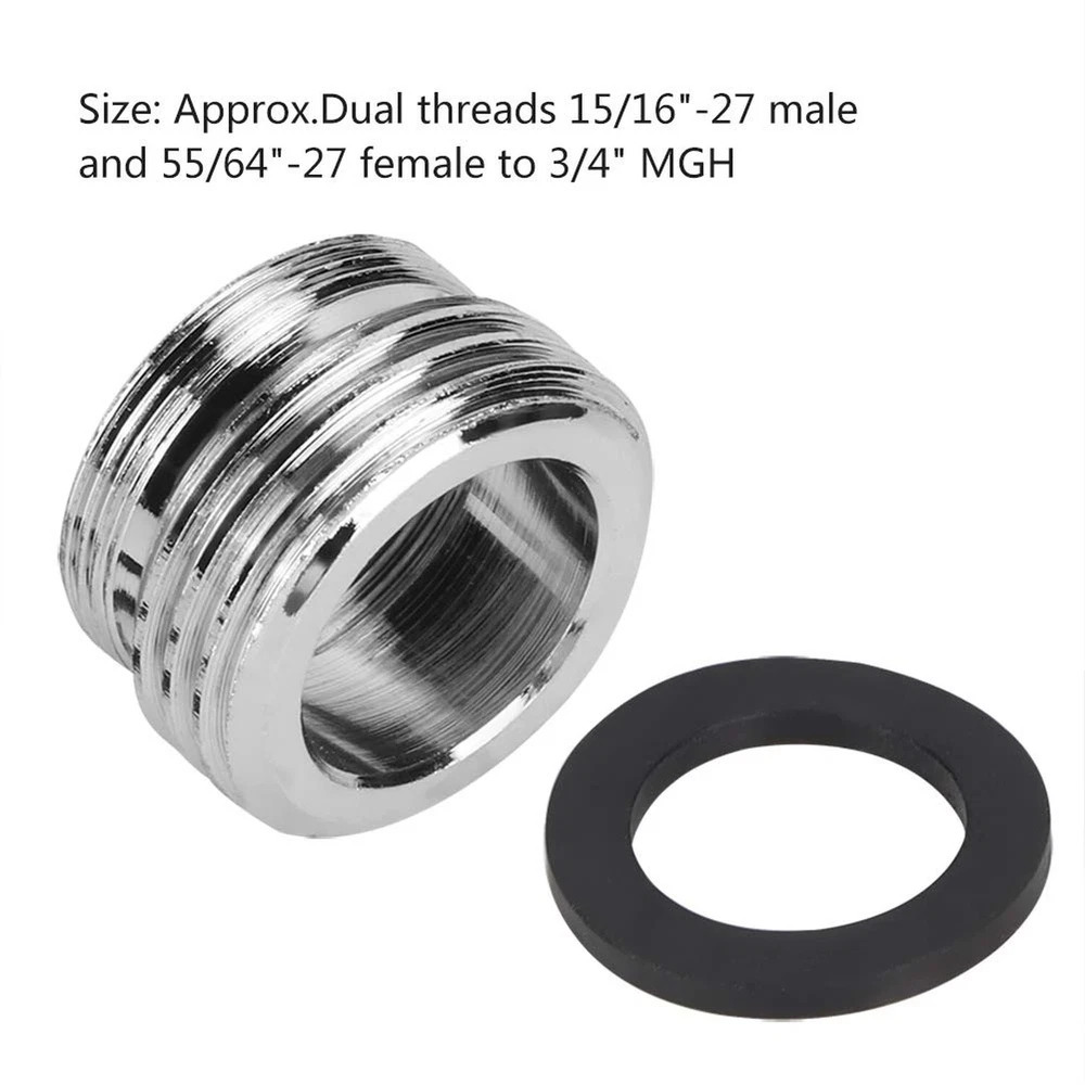Features: Made of high-quality material for long-lasting durability. Professional manufacturing, stable characteristics, high reliability. This threaded faucet adapter allows you to attach the garden hose connector of your wort chiller directly to the kitchen sink for quick and easy cooling of your wort. It also connects bottle / carboy washers, or any standard garden hose to most kitchen or bath faucets. This adapter converts female or male fine faucet thread to male garden hose thread. Fits most kitchen and bathroom faucets. Specifications: Condition:100% Brand New Material: Chrome plated brass Color: As shown in the picture Size: Approx.Dual threads 15/16"-27 male and 55/64"-27 female to 3/4" MGH Package List: 1*Kitchen Faucet Adapter 1*Gasket