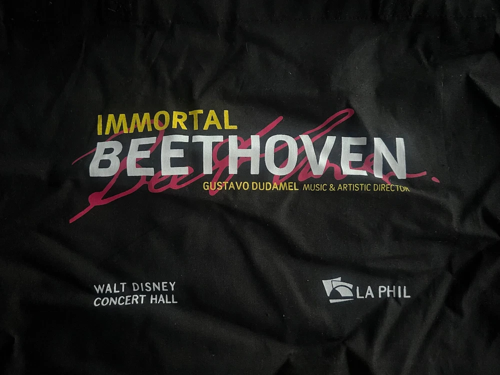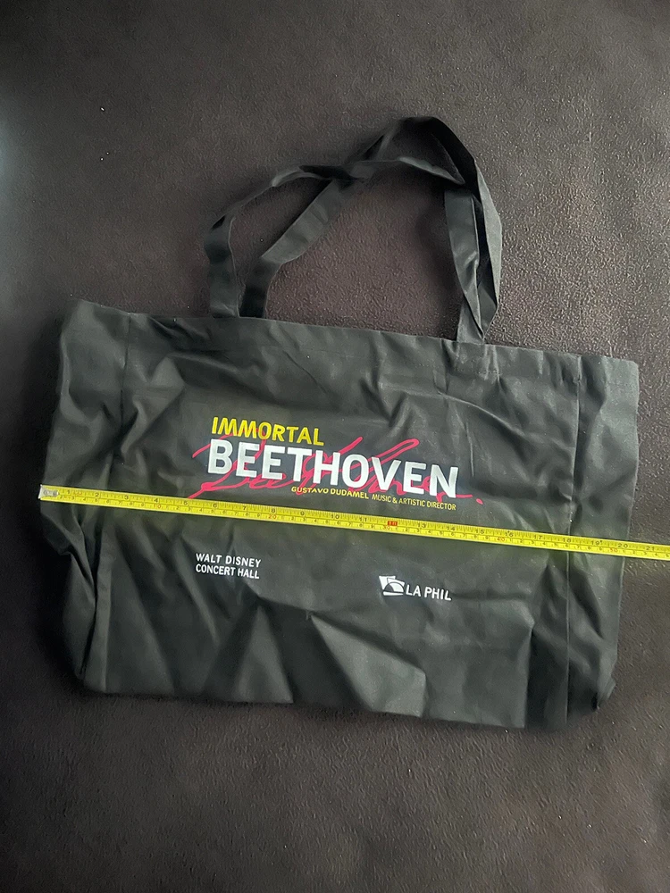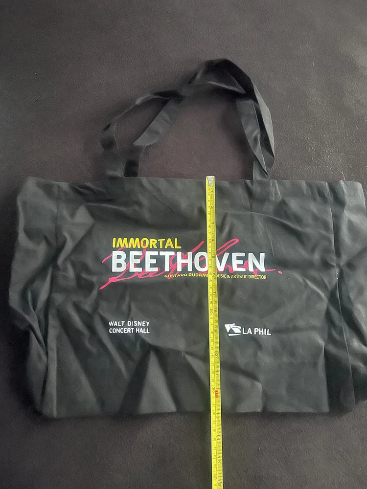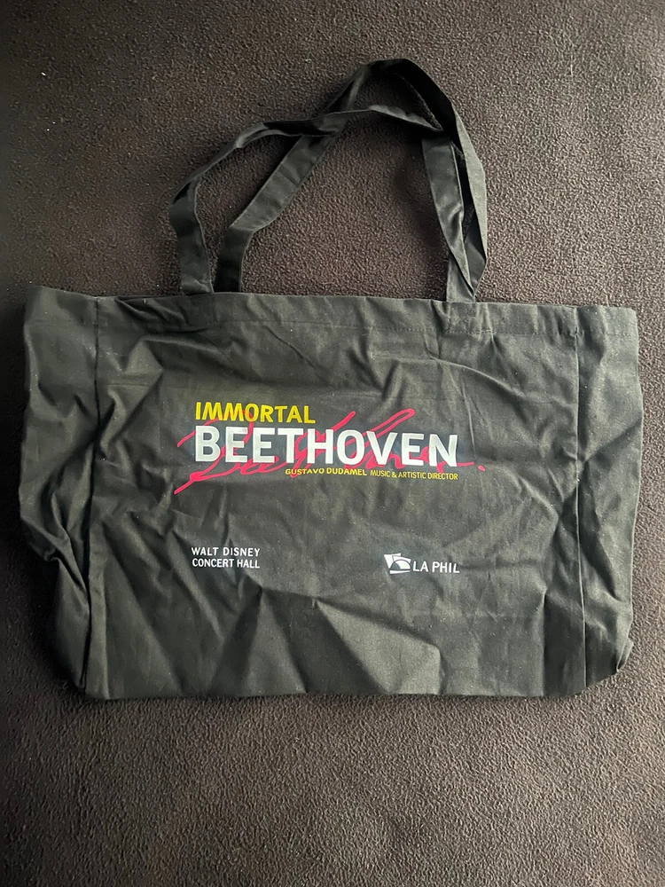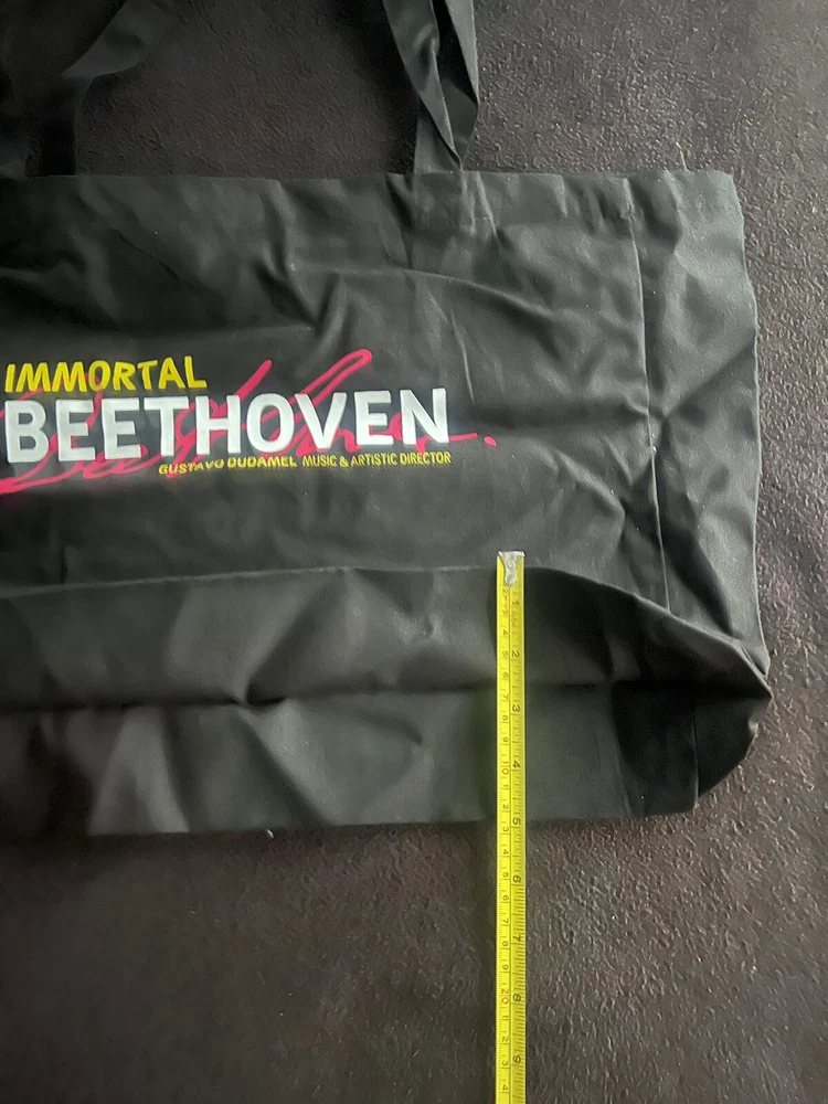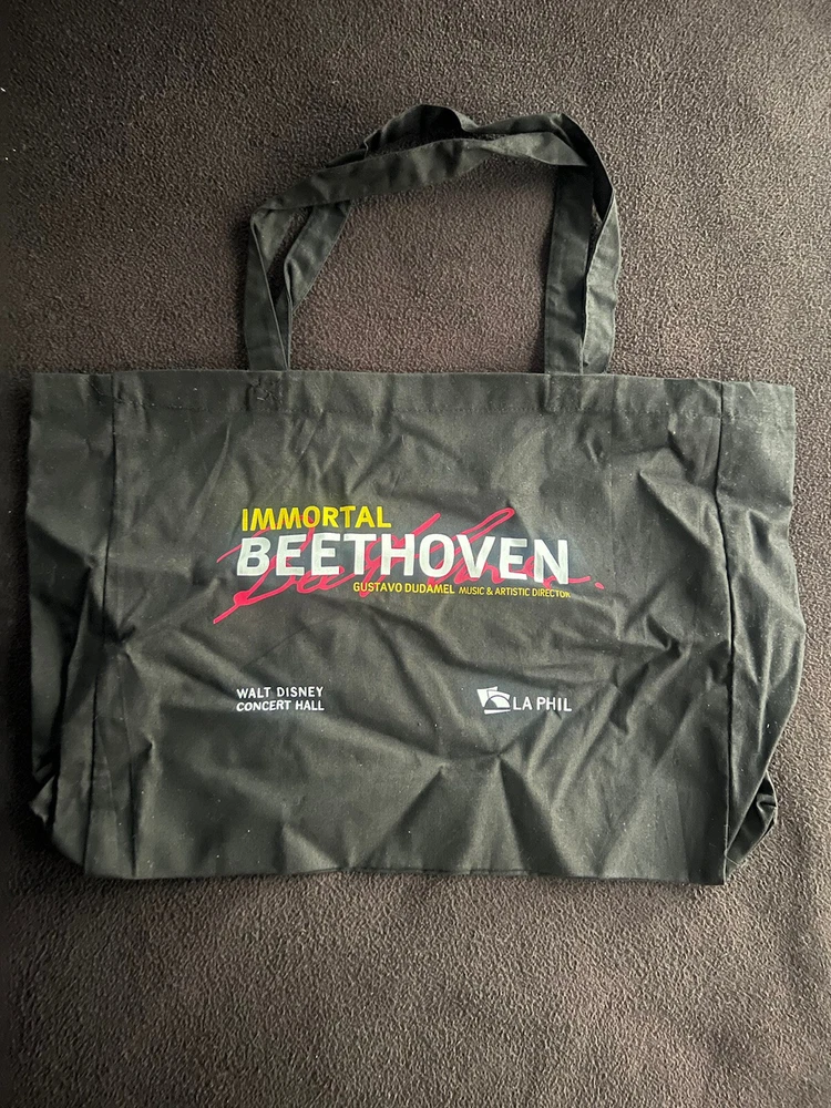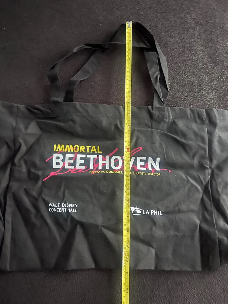 LA Phil Tote Bag Gustavo Dudamel Walt Disney Concert Hall Immortal Beethoven. Condition is “New” never used and has been folded/rolled up and in storage since given. I don’t think this was ever a for purchase product just only given out to staff, but can’t be certain of that. I just know it’s rare. This bag is on the thin side so not for heavy items.