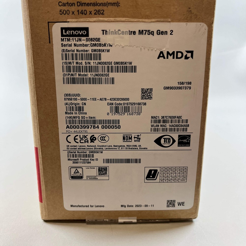New Lenovo ThinkCentre M75q Gen 2 11JN-0082GE Ryzen 5 5600G 3.40GHz 16GB RAM 512GB NVMe New Lenovo ThinkCentre M75q Gen 2 11JN-0082GE Ryzen 5 5600G 16GB RAM 512GB SSD Items included in this sale: New Lenovo ThinkCentre M75q Gen 2 11JN-0082GE Ryzen 5 5600G 3.40GHz 16GB RAM 512GB NVMe *All originally boxed contents are included. Specifications: Collection Windows Computers Sub-Collection Windows Desktop Brand Lenovo Model ThinkCentre M75q Gen 2 MPN 11JN-0082GE Release Year 2024 Processor Brand AMD Processor Ryzen 5 5600G Processor Speed 3.40GHz GPU or Graphics Card N/A Memory (RAM) 16GB RAM Storage 1 512GB Storage Type 1 NVMe Storage 2 N/A Storage Type 2 N/A Integrated Graphics AMD Radeon Graphics Bluetooth Yes CD Rom Drive No WiFi Yes Operating System Windows 11 Home Condition New MFG Warranty No UPC N/A Serial# SGM0B5K1W Cosmetic condition: This item is brand new sealed. Please view our close up photos, as these are taken of the actual item being offered for sale. Functionality: This item is brand new sealed. New Lenovo ThinkCentre M75q Gen 2 11JN-0082GE Ryzen 5 5600G 3.40GHz 16GB RAM 512GB NVMe New Lenovo ThinkCentre M75q Gen 2 11JN-0082GE Ryzen 5 5600G 16GB RAM 512GB SSD Items included in this sale: New Lenovo ThinkCentre M75q Gen 2 11JN-0082GE Ryzen 5 5600G 3.40GHz 16GB RAM 512GB NVMe *All originally boxed contents are included. Specifications: Collection Windows Computers Sub-Collection Windows Desktop Brand Lenovo Model ThinkCentre M75q Gen 2 MPN 11JN-0082GE Release Year 2024 Processor Brand AMD Processor Ryzen 5 5600G Processor Speed 3.40GHz GPU or Graphics Card N/A Memory (RAM) 16GB RAM Storage 1 512GB Storage Type 1 NVMe Storage 2 N/A Storage Type 2 N/A Integrated Graphics AMD Radeon Graphics Bluetooth Yes CD Rom Drive No WiFi Yes Operating System Windows 11 Home Condition New MFG Warranty No UPC N/A Serial# SGM0B5K1W Cosmetic condition: This item is brand new sealed. Please view our close up photos, as these are taken of the actual item being offered for sale. Functionality: This item is brand new sealed. × × × × × × × × Buy now and save! Shipping info Click the Shipping & Payments tab above the listing description for more info FREE Shipping Click the Shipping & Payments tab above the listing description for more info! Additional delivery notes PICK UP OPTION Sorry, our items are NOT available for pick-up. PAYMENT Immediate payment is required upon selecting "Buy It Now" or upon checking out through the cart. We accept payment via U.S. PayPal accounts and all Major Credit Cards, Debit Cards & Google Pay. We are legally required to collect sales tax in those states and localities where we maintain a physical presence (nexus). The applicable amount of sales tax charged to an order will be calculated based on the shipment destination's state and local sales tax laws. Thank you for shopping with us on eBay! Additional Information No additional information at this time Ask seller a question You might also like New Debra professional wireless Microphone AU400 New Brother INKvestment Tank C30333PKS Yellow, Cyan and Magenta Ink Cartridge EX Broken Vivitar VES529 16.0MP Digital Camera Broken GPS Only Apple Watch Series 7 41MM Aluminum Face Only READ Contact To contact our Customer Service Team, simply click the button here and our Customer Service team will be happy to assist. Ask seller a question © PayMore Shopton Shipping & Payments Shipping is FREE for this item Payment Accepted Payment Methods Immediate payment is required upon selecting "Buy It Now" or upon checking out through the cart. We accept payment via U.S. PayPal accounts and all Major Credit Cards, Debit Cards & Google Pay. We are legally required to collect sales tax in those states and localities where we maintain a physical presence (nexus). The applicable amount of sales tax charged to an order will be calculated based on the shipment destination's state and local sales tax laws. Thank you for shopping with us on eBay! Returns Returns are accepted Items must be returned within 30 days of the auction ending Seller will pay for return shipping. eBay integration by