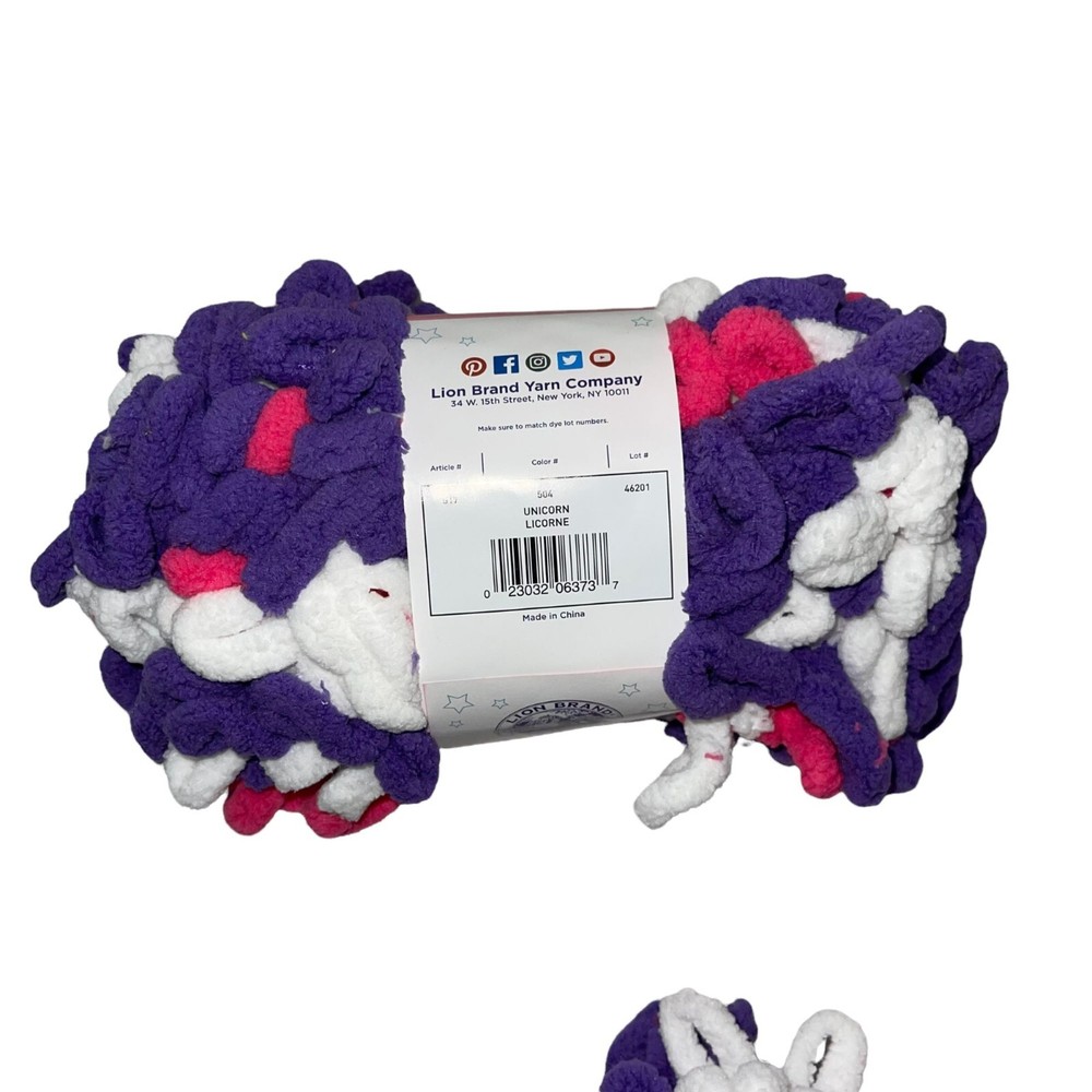 Features: • Brand: Lion Brand • Type: Yarn • Style: Off the Hook • Line: Magic Unicorn • Color: #504, Purple, Pink, White • Pattern: Solid • Made in China • Care: Machine Wash • Number of Skeins: 3 • Weight: 7 Jumbo • Net Weight: 3.3 Oz, 95 Grams • Material: 100% Polyester • Condition: NWT, Brand New • Other: Afgan, Throw, Crochet, Crochet, Craft Orders are shipped within 1-2 business days. 0113027002