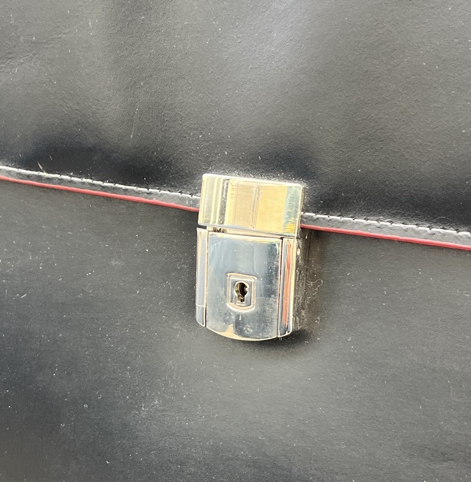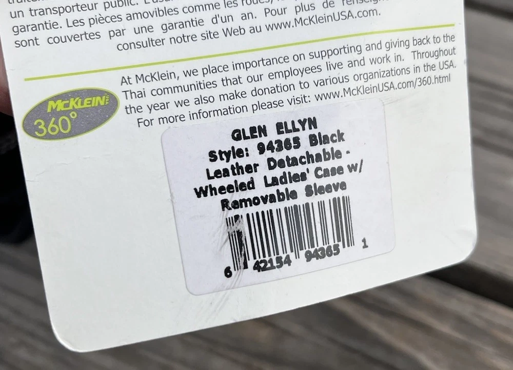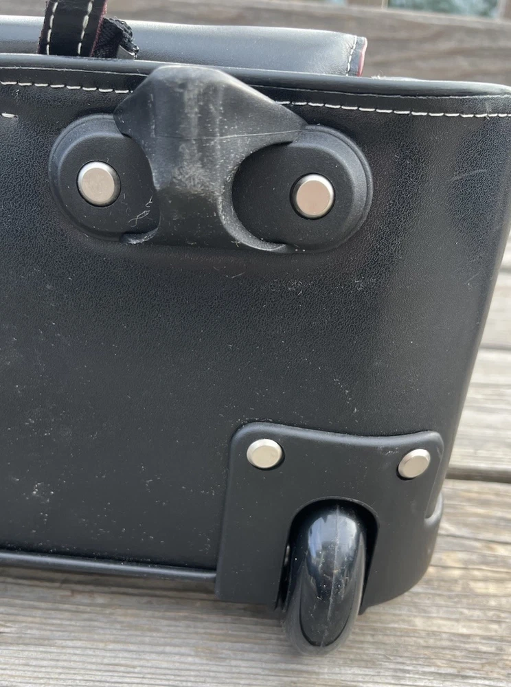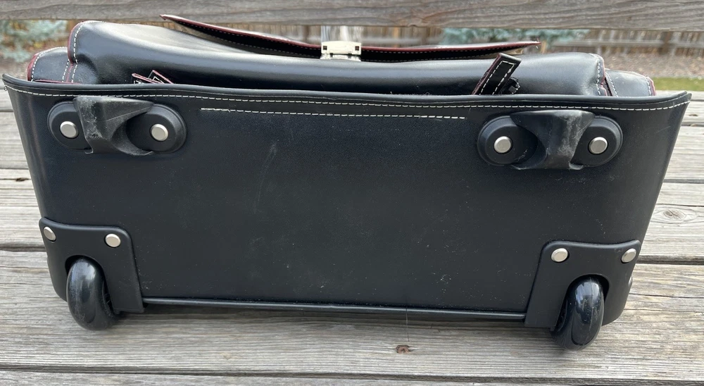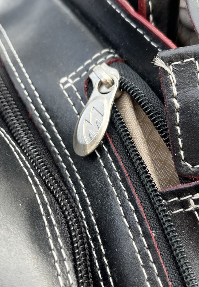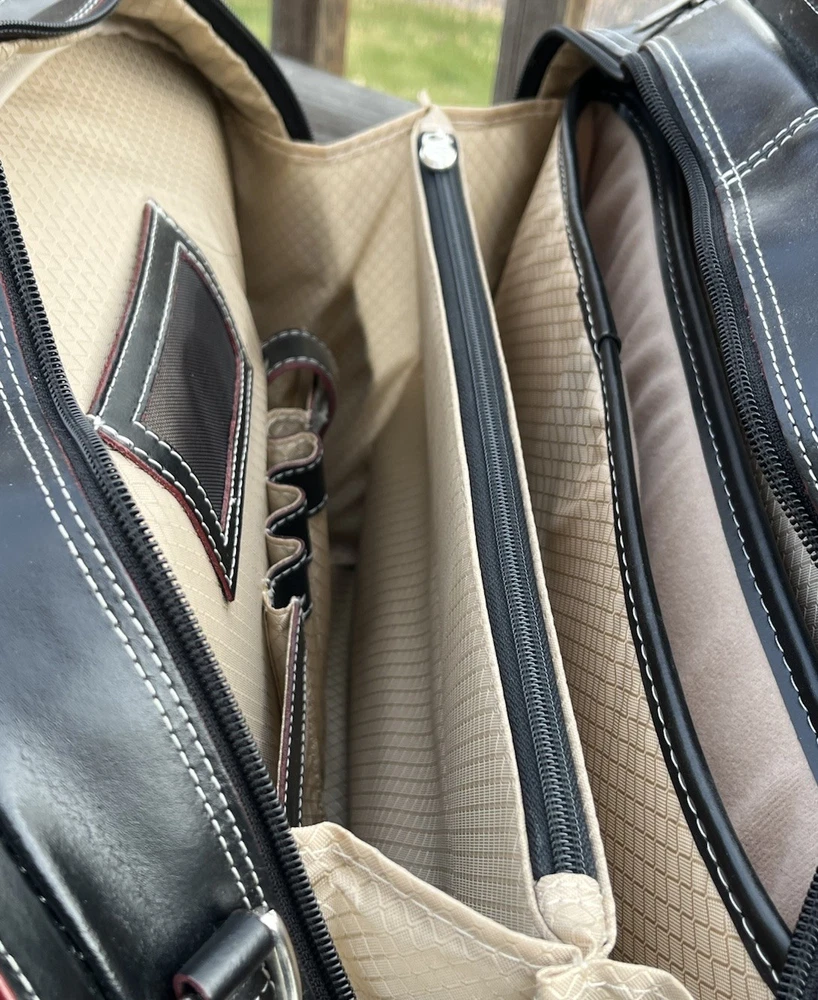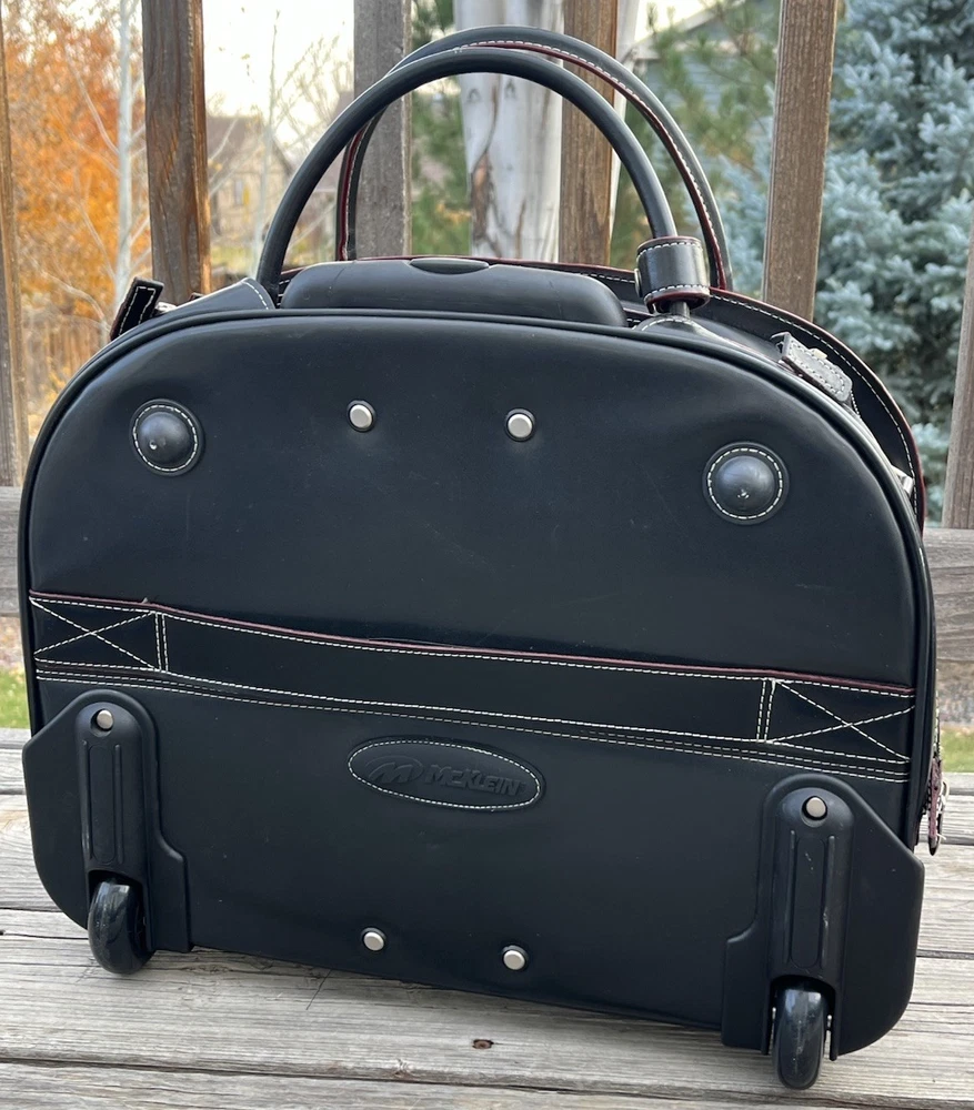New! McKlein Glen Ellyn 94365 Black Leather Detachable Wheeled Women's Briefcase Case Bag Removable wheeled sleeve Top handles Telescopic handle Measures approx: 15"HX17"WX7"D New with tags - missing detachable shoulder strap
