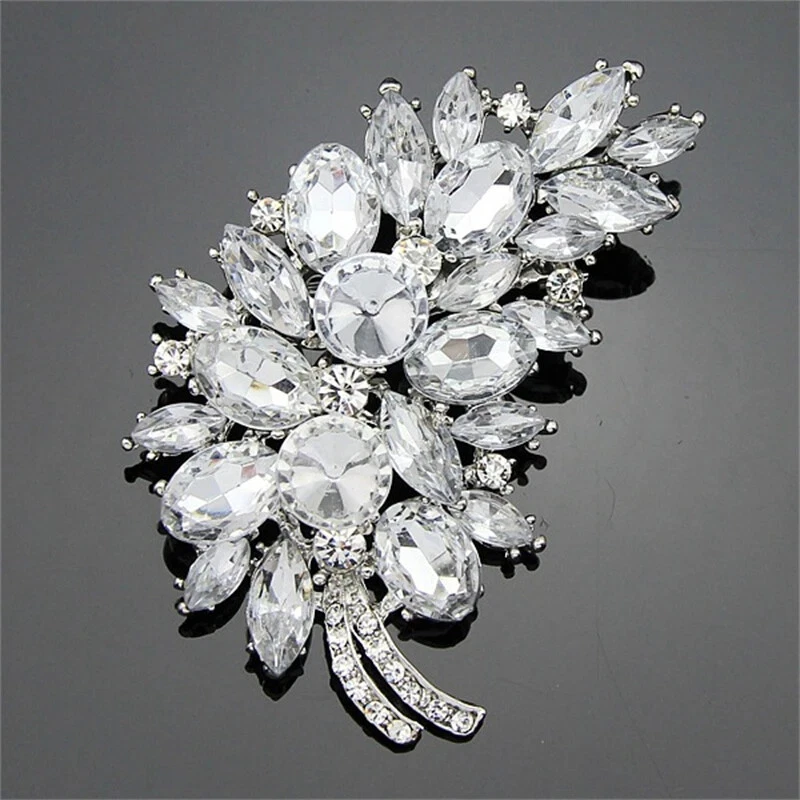 New Multicolor Feather Brooch Fashion Pink Corsage Crystal Lapel Pin Accessories