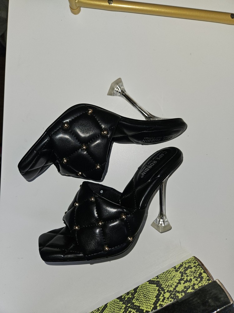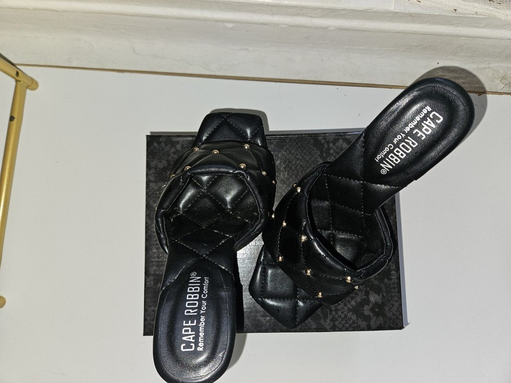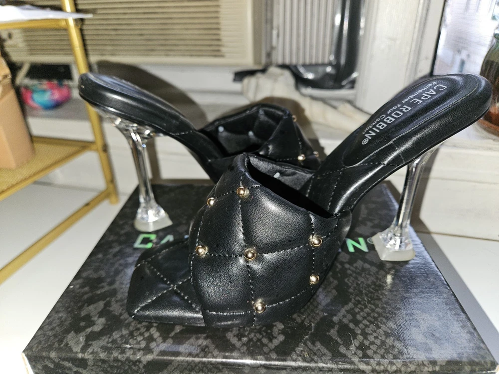 New, Never Worn, Sizes 7 Black Cape Robbin Stud Cecilia Quilted Open Toe Heels.