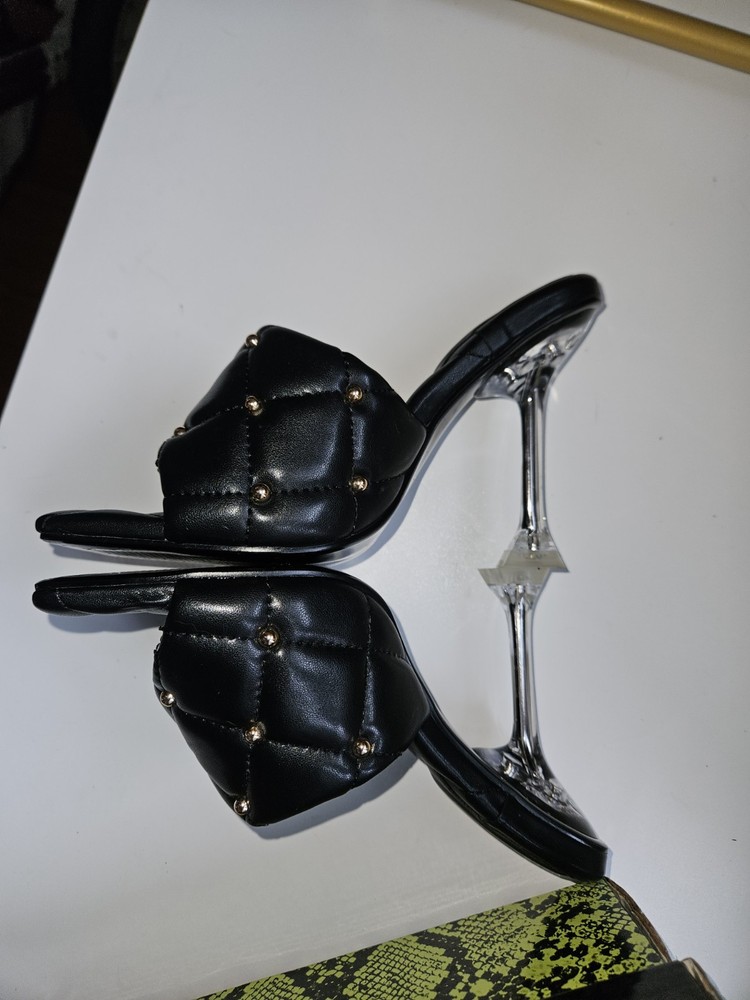 These heels are absolutely stunning! The quilted design and stud details add such a chic, edgy vibe. They fit perfectly and feel comfortable right out of the box. The open toe makes them great for warmer weather, and the black color goes with everything. Love how they elevate any outfit—definitely worth it!